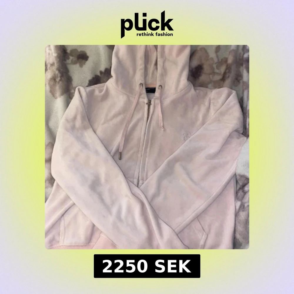 Supermjuk ljusrosa hoodie från Juicy Couture i klassisk velour. Tröjan har dragkedja, huva med snörning och broderad JC-logga på bröstet. Perfekt för en chill och trendig look.