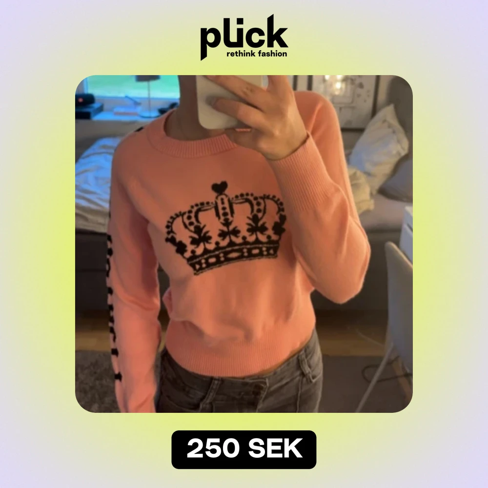Super fin juicy tröja i rosa/peach färg, stolek S men passar XS också! skick 10/10, det står ”punk royalty” på armen 🤩