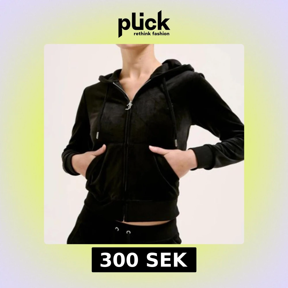Svart hoodie i mjuk velour med dragkedja framtill och huva med snörning. Dragkedjans J är lite rostat men inget som syns på långt håll. Storlek xs💞skriv om ni undrar något