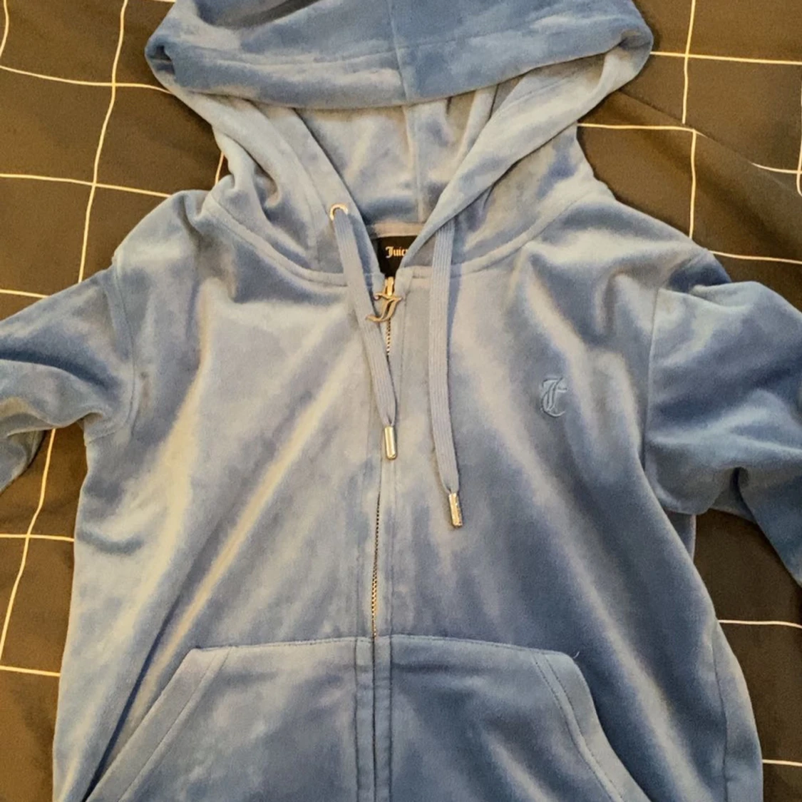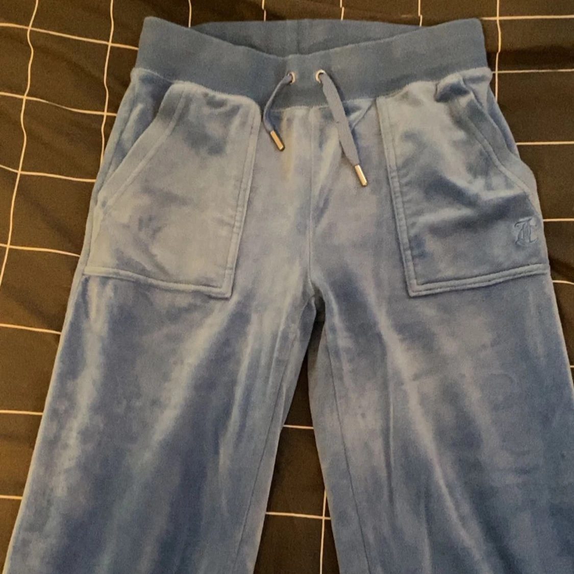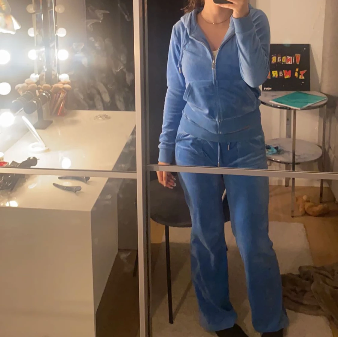 Säljer en snygg blå velour hoodie och matchande byxor från Juicy Couture. Hoodien har dragkedja och snören i luvan, medan byxorna har resår och snörning i midjan. Perfekt för en avslappnad stil. 💙Köpte de för 2500kr. Pris kan diskuteras vid snabbköp.