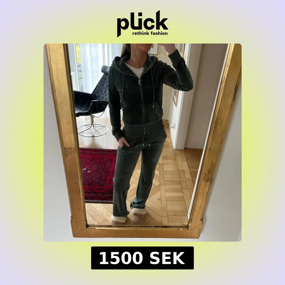 Juicy Couture set i mörkgrön färg. Oanvänd med lappar kvar. Byxorna är i storlek S och tröjan i storlek XS.