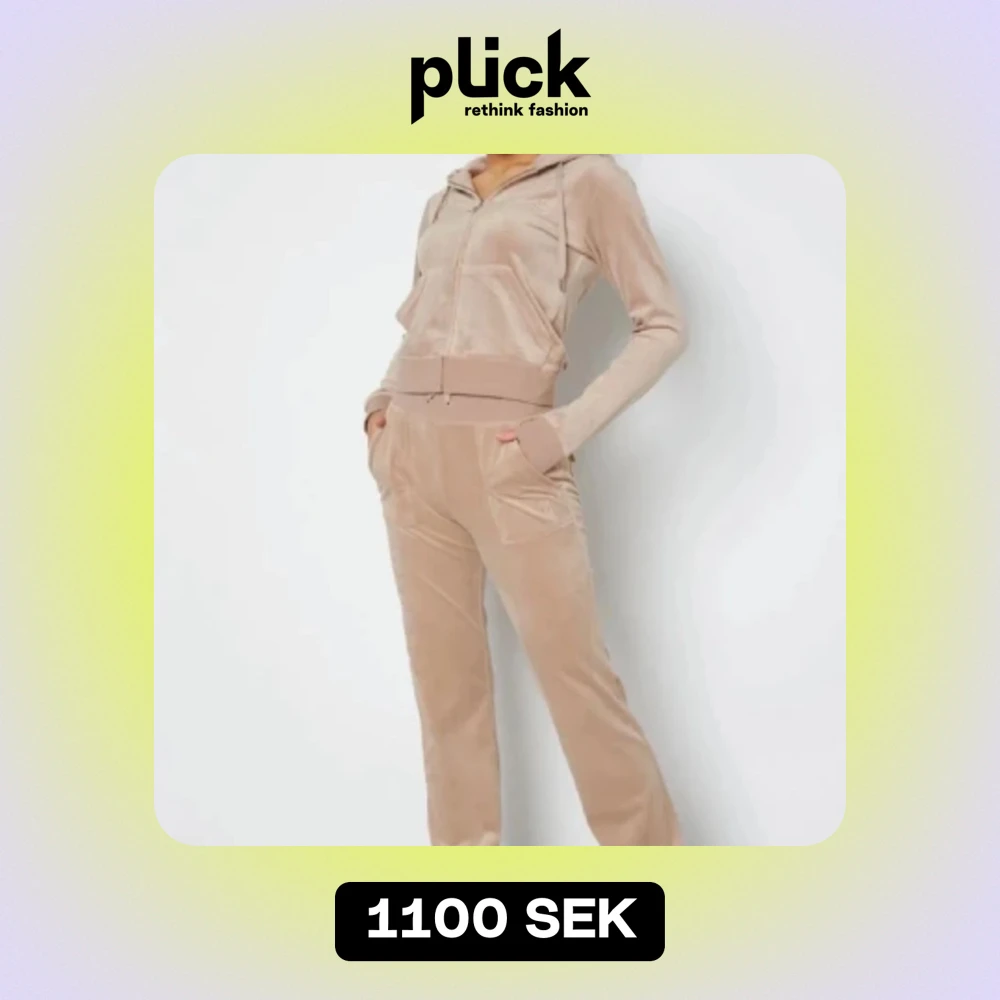 Ett juicy sett i bra skick. Inga skador på byxorna eller koftan. Den är i färgen beige. Tröjan i storlek s och byxorna xs. De är även nedkortade och passar 155-160 personer.