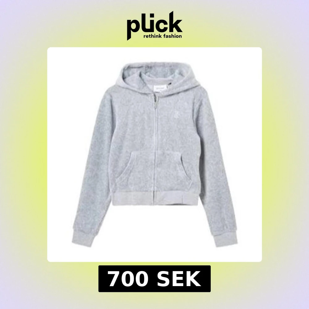 En klassisk ljusgrå hoodie från Juicy med dragkedja framtill och huva. Tröjan har två fickor på magen och ribbade muddar vid ärmslut och nederkant. Pris kan diskuteras.