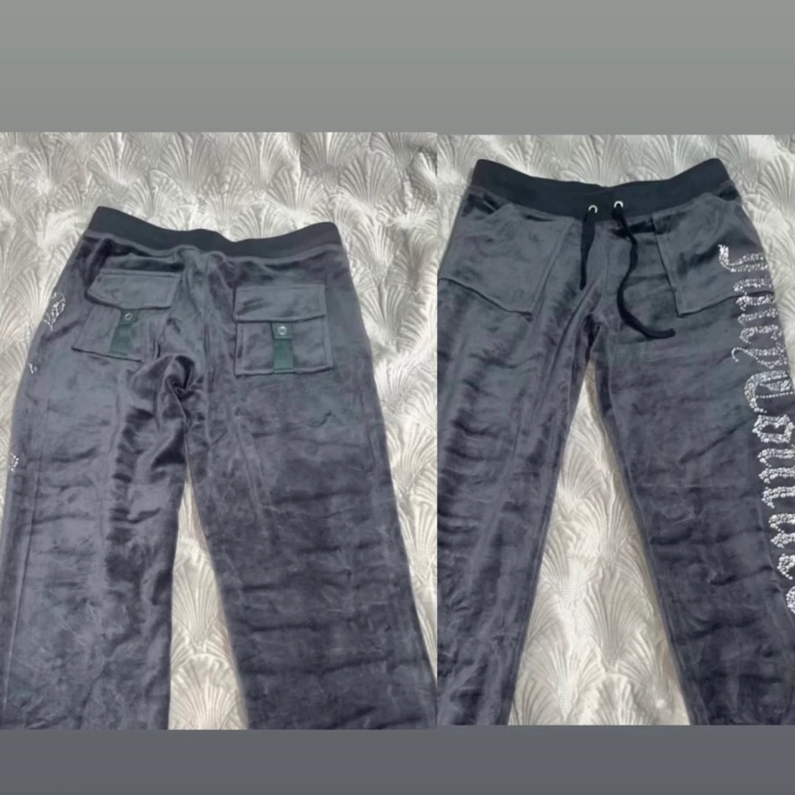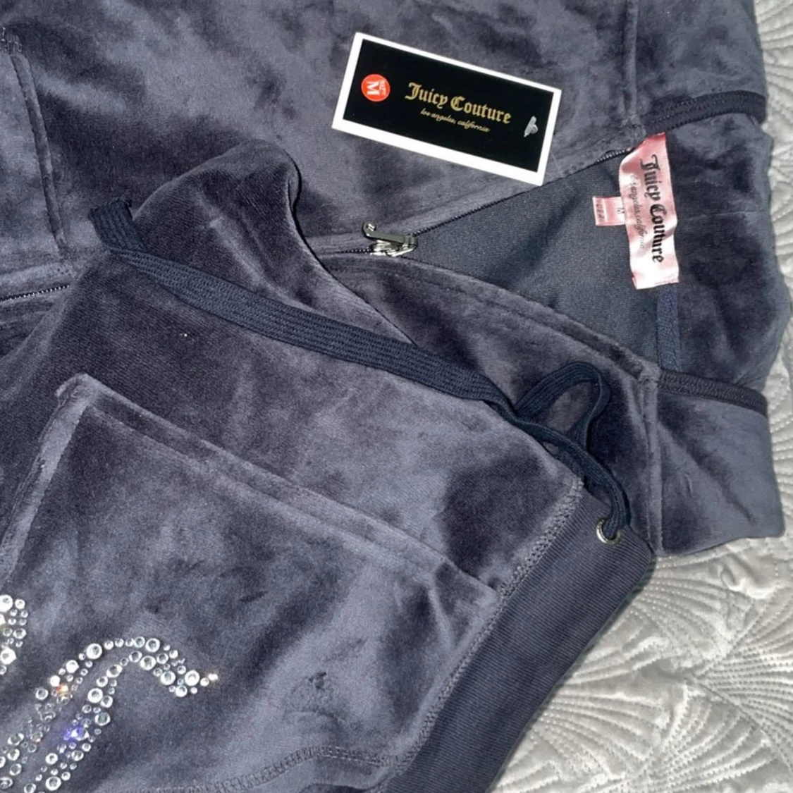Villig att gå ner i pris vid snabb affär!! Helt nytt och oanvänt juicy couture set i storlek M. Köpt i usa och prislapp sitter kvar. Den ser blå ut på bilden men är mörkgrå irl. 1500 kr för både koftan och byxorna, 800 kr separat.❤️