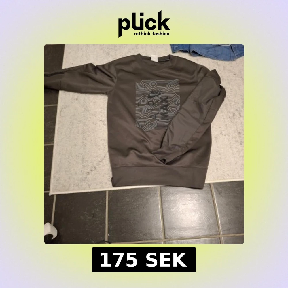 Snygg grå sweatshirt från Nike Air Max med ett grafiskt tryck på bröstet i silverton. Tröjan har rund hals och långa ärmar, tillverkad i mjuk polyester som känns skön mot huden. Perfekt för dig som gillar streetwear och sportig stil.