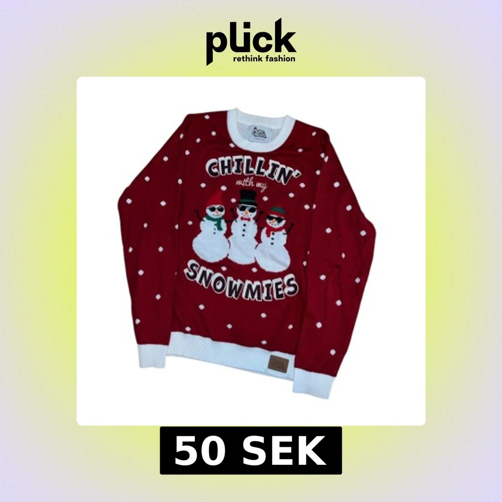 Rolig röd jultröja från Silly Santa med texten 'Chillin' with my Snowmies' och tre snögubbar på framsidan. Tröjan har vita prickar som liknar snöflingor och vita muddar vid ärmslut och nederkant. Perfekt för julfirandet! 🎅