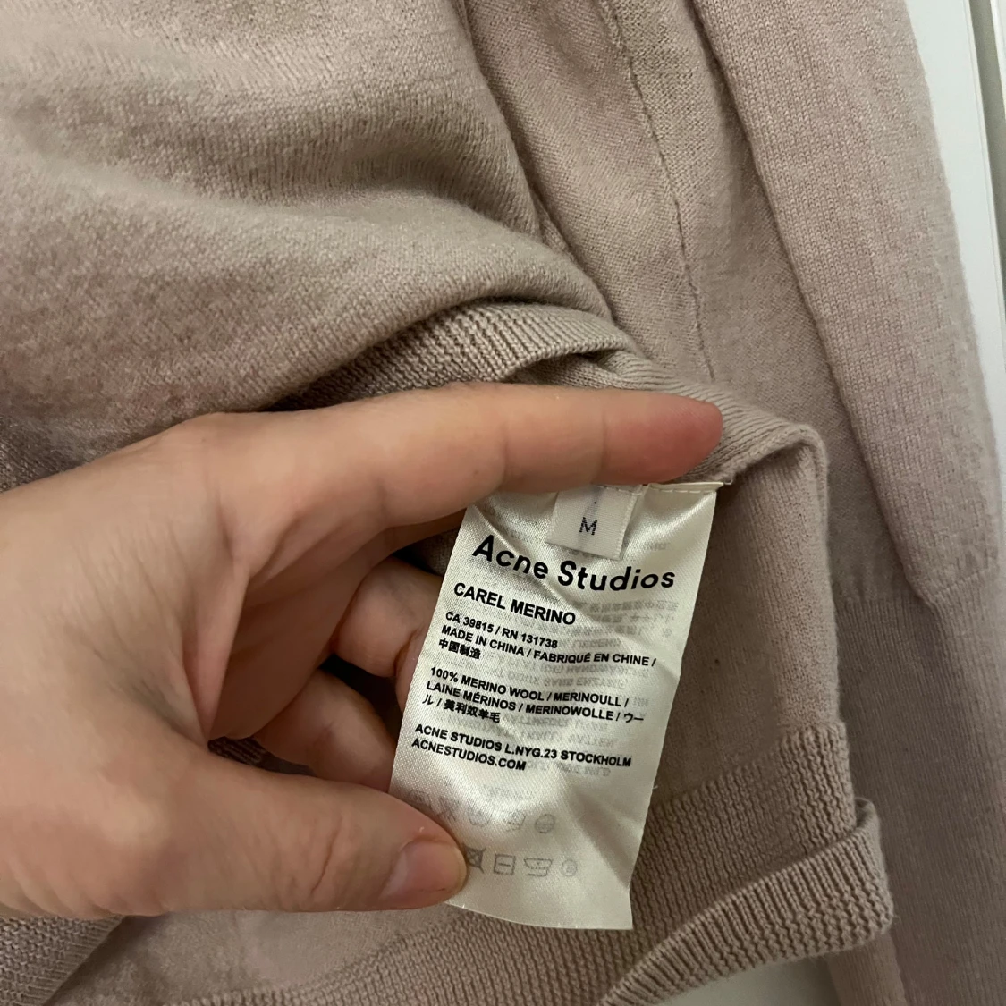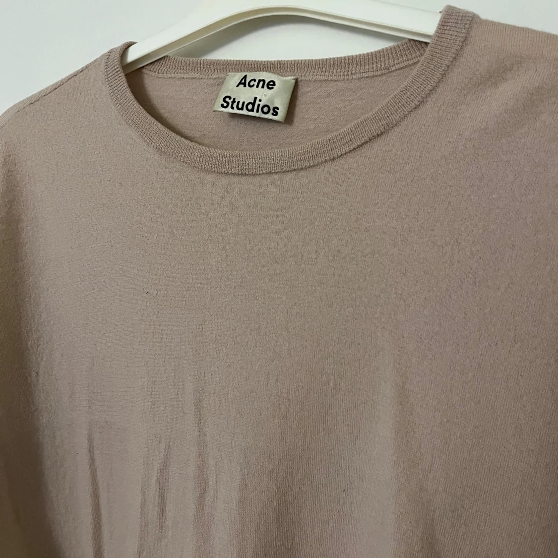 Rosa jumper från Acne Studios, modell ”Carel Merino”, i storlek M. I mycket fint skick. 100% merinoull. Längd ca 60 cm, byst ca 48 cm, ärmlängd mätt från kragen ca 75 cm.