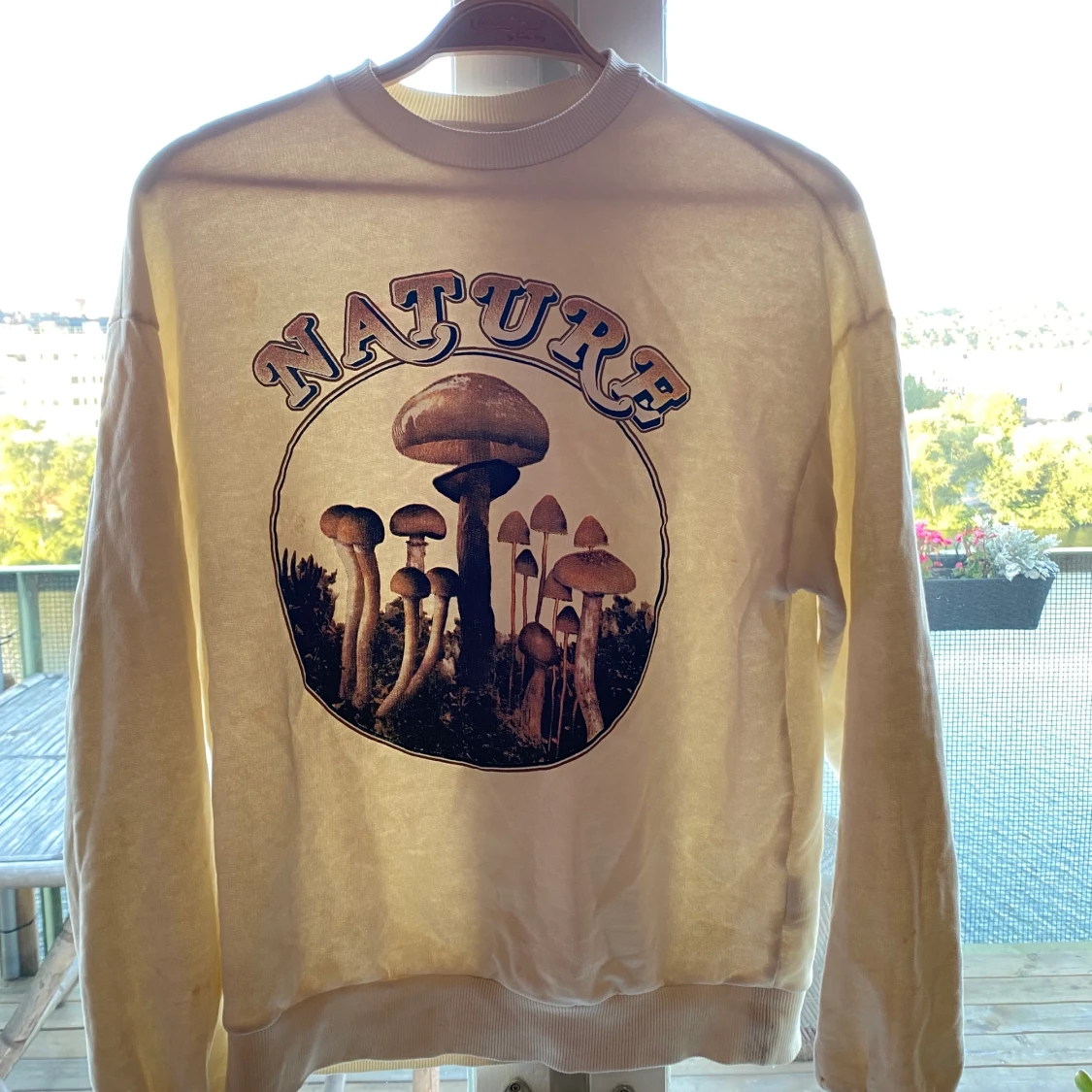 Lätt använd baggy collage tröja från junkyard, har en liten rosa fläck på höger ärm men annars är den som ny