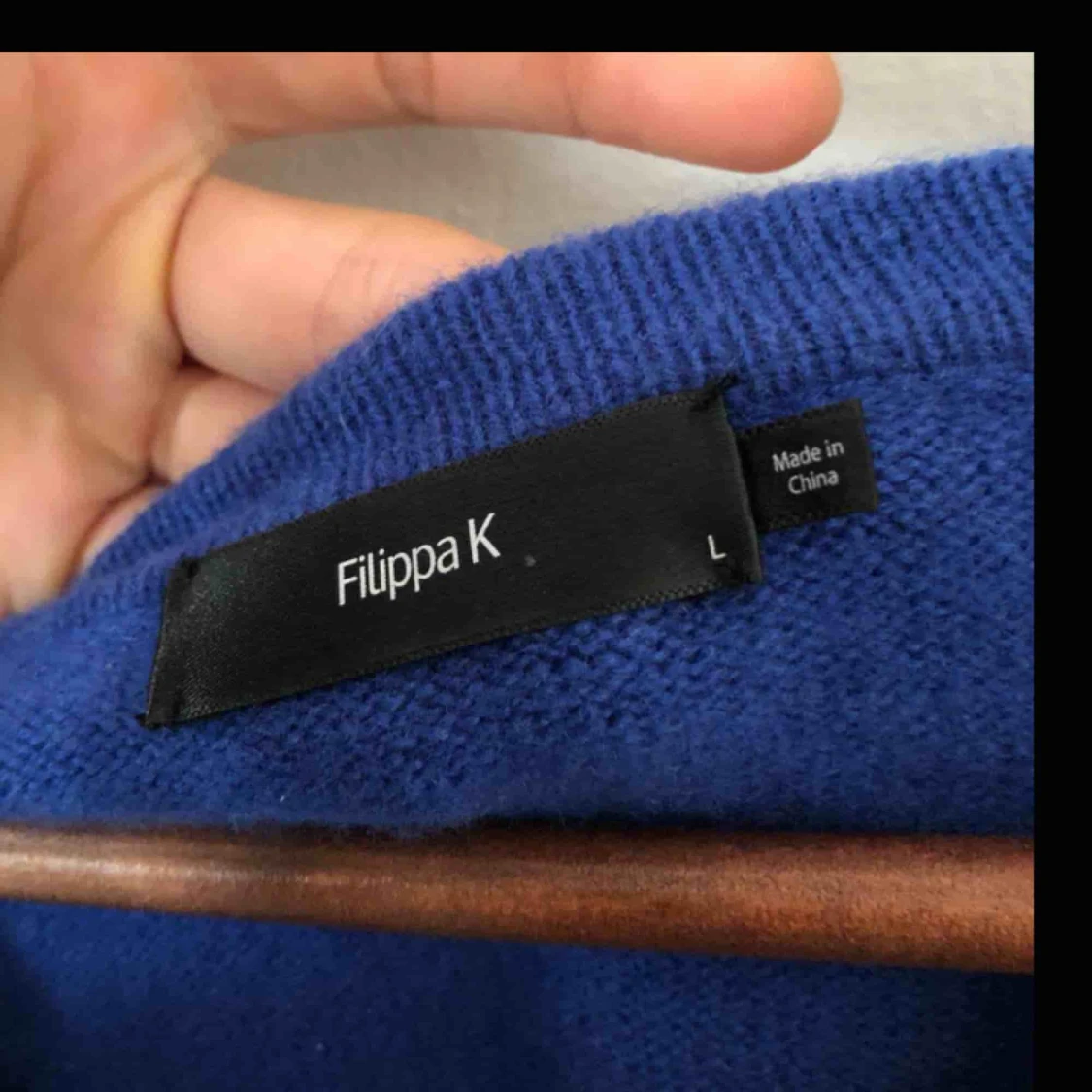 Kornblå tröja i 100 % ull från Filippa K. Storlek L men passar mig som är M. Fina detaljer på armbågarna. Den är helt i nyskick då jag använt den två gånger.