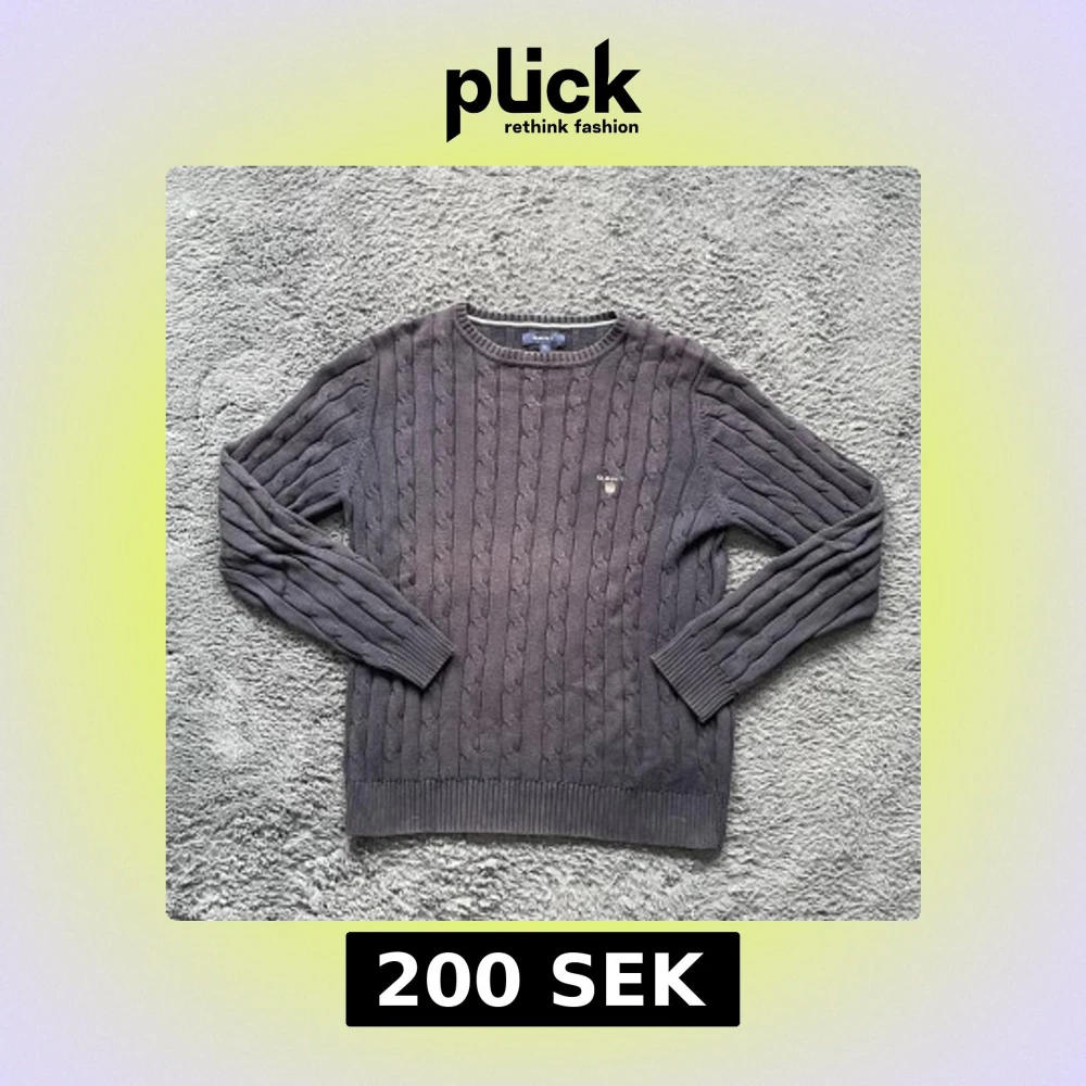 Säljer en stilren grå kabelstickad tröja från GANT. Tröjan har en klassisk rund halsringning och långa ärmar med ribbade muddar. Perfekt för kyligare dagar och ger en tidlös look. Tröjan har blekningar och därav priset