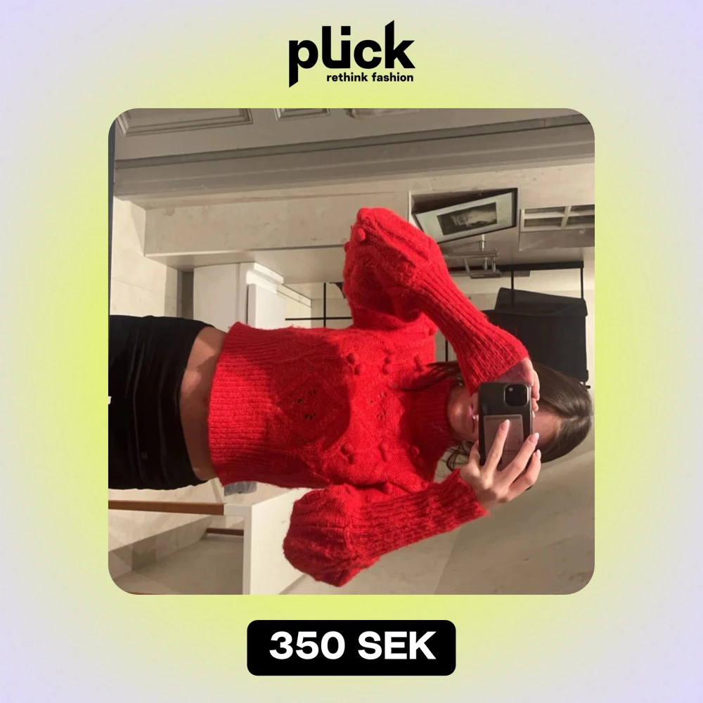 Säljer en superfin röd stickad tröja från Gina Tricot med unika bollar som detaljer. Den är croppad och har långa ärmar, perfekt för höst och vinter. Tröjan är både mysig och snygg! Bara använd 2-3 gånger och är i utmärkt skick.