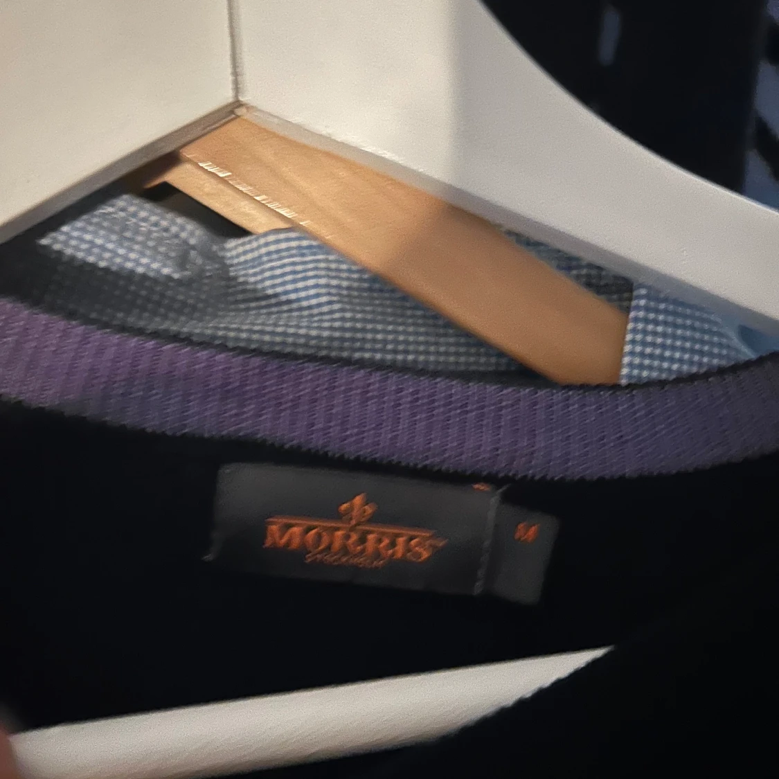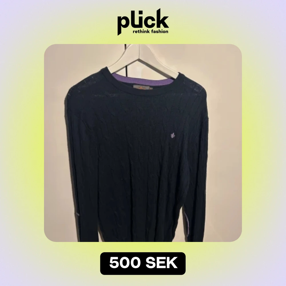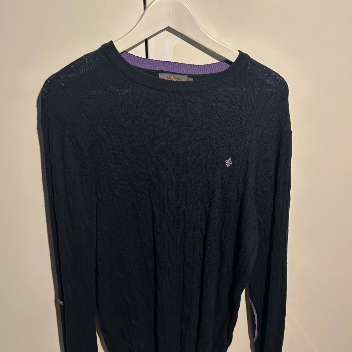 Blå/lila Kabelstickad tröja från Morris i fint skick! Storlek M med lila detaljer på armbågen
