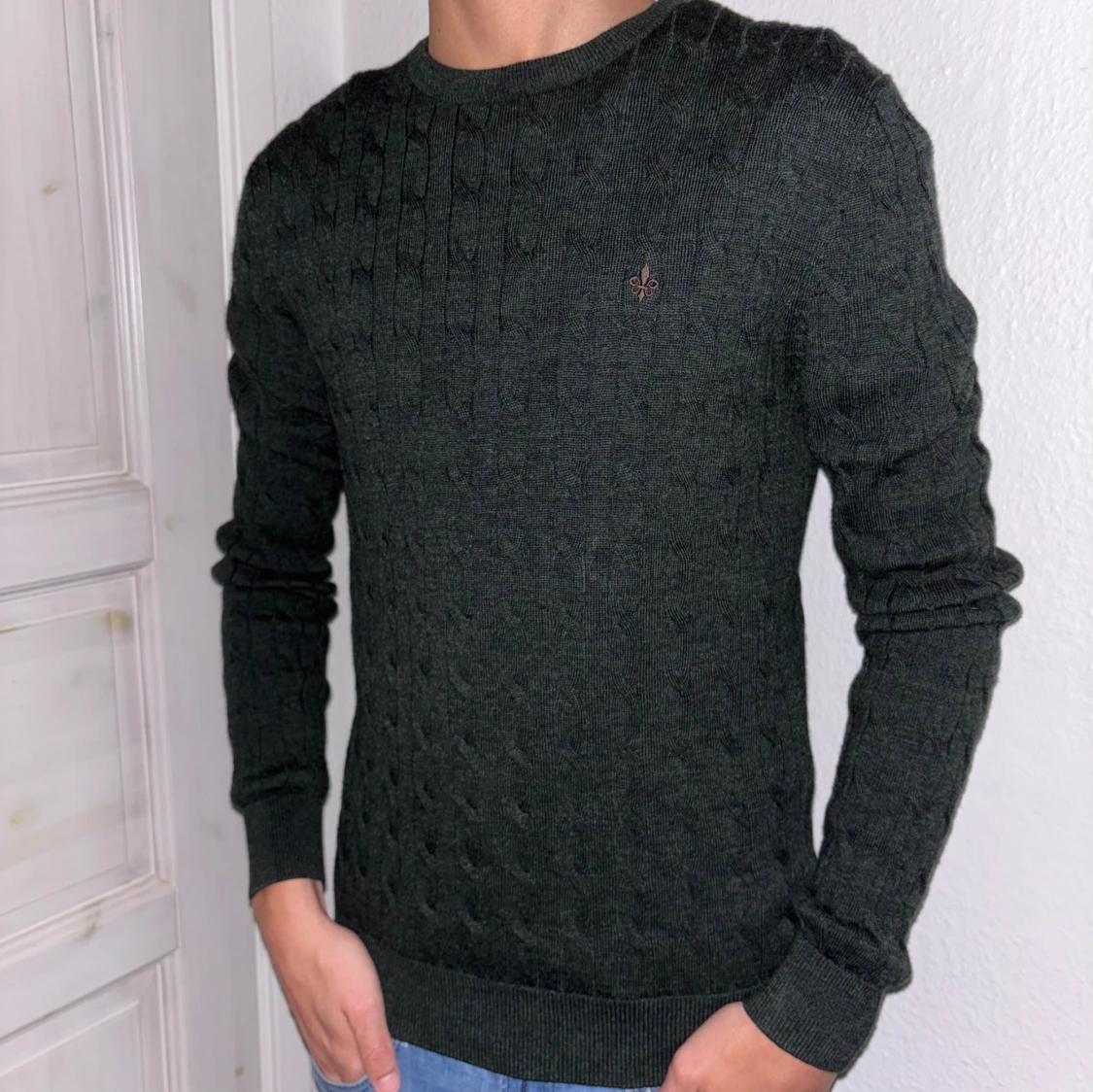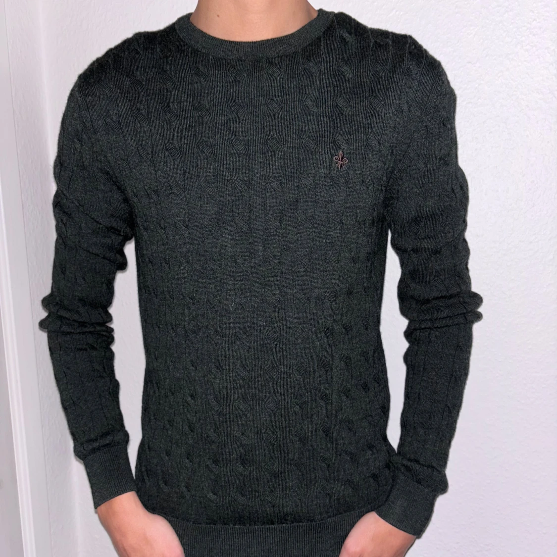 Olivgrön, kabelstickad morris tröja i mycket bra skick! - 10/10 skick, inga defekter. Storlek S. Bara att höra av sig vid frågor! nypris: 1700kr