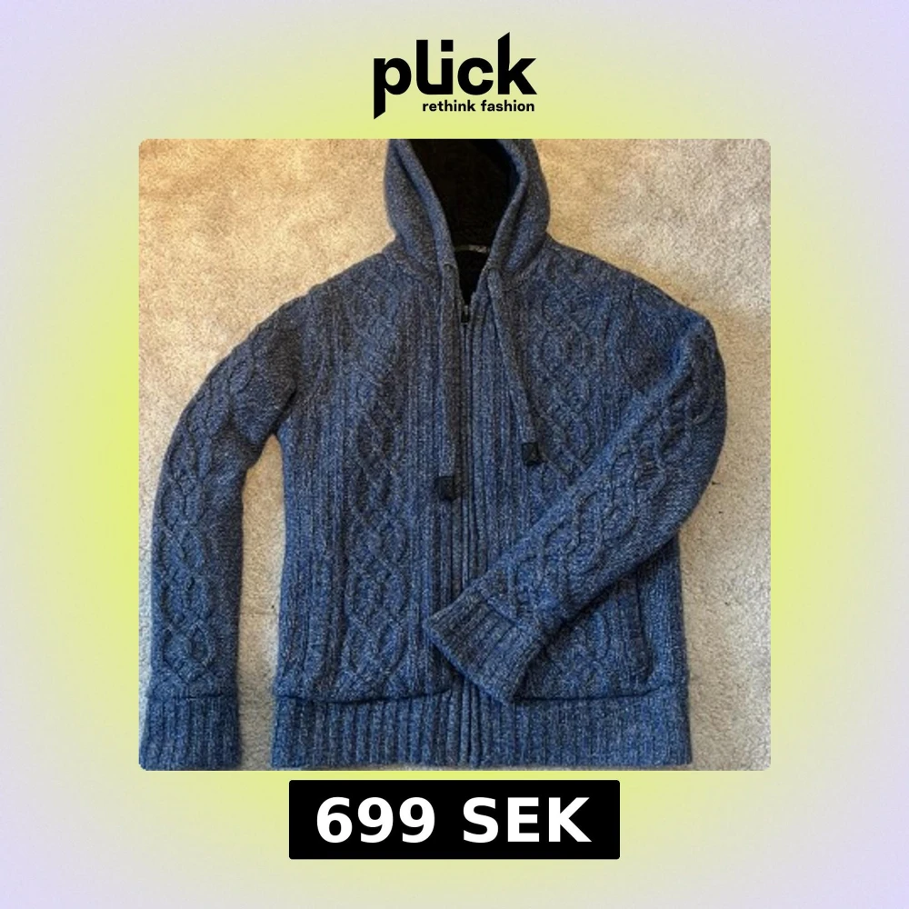 Mysig blå stickad cardigan med dragkedja och fodrad insida. Kabelstickat mönster. Size M. Otroligt bra skick. Perfekt för kyliga dagar när du vill vara både varm och snygg. Skriv vid funderingar! 💙🤍Pris ej hugget i sten