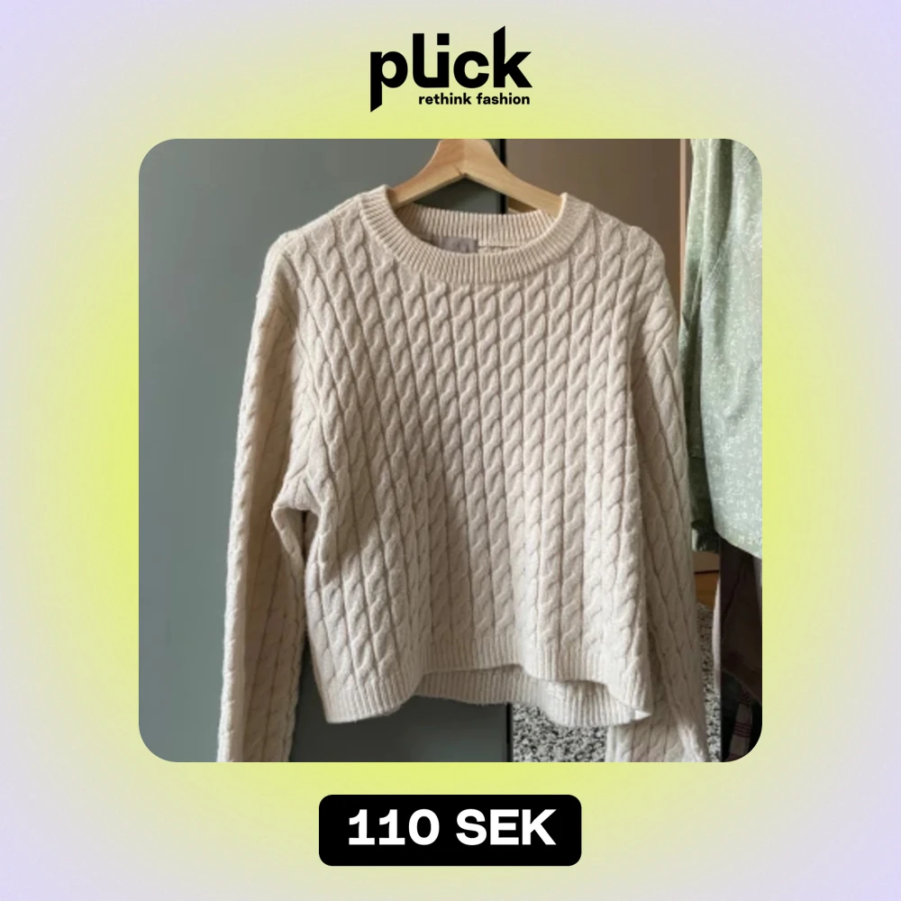 Jätte fin kräm vit, kabelstickad tröja från hm💗 säljer då den inte e blivit använd alls, prislappen är dock inte kvar 💗 vill sälja så snabbt som möjligt