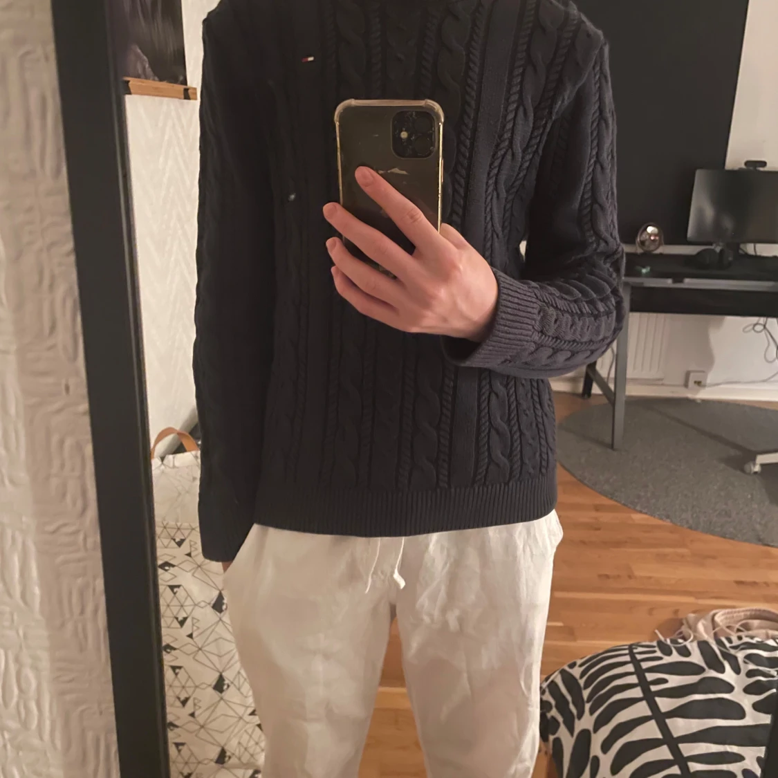 Säljer min feta kabelstickade Tommy Hilfiger tröja! Storlek 164 men passar mig som är 171 och bär xs och S. Skriv gärna vid frågor🤗