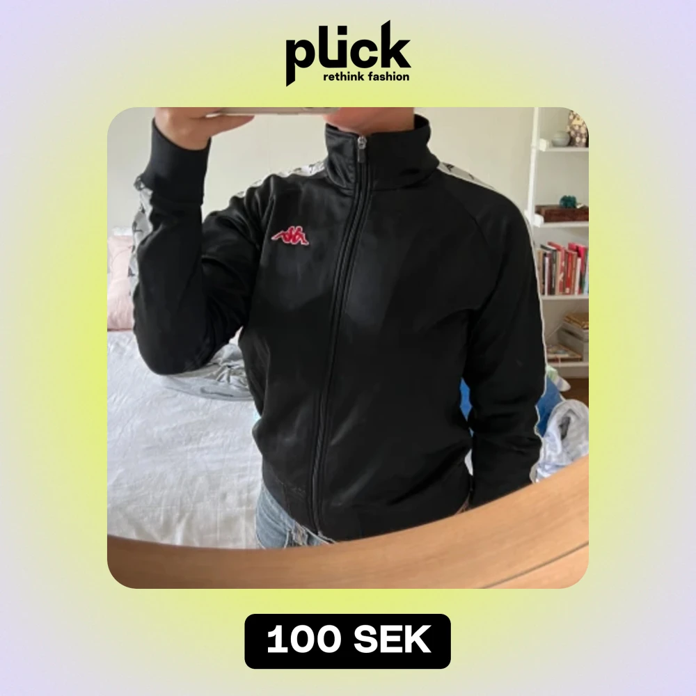En svart zip från kappa. Står large på lappen men är mer storlek m/s. Köparen står för frakt