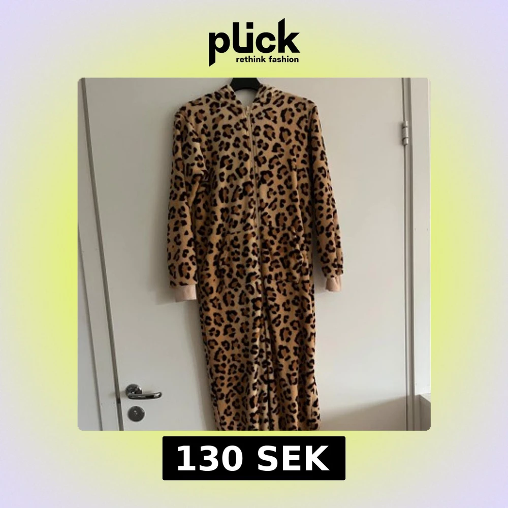 Mysig och bekväm onesie i leopardmönster med dragkedja framtill. Perfekt för att hålla sig varm och stilren hemma. Den har långa ärmar och en huva för extra komfort.