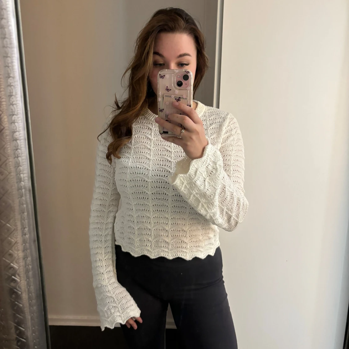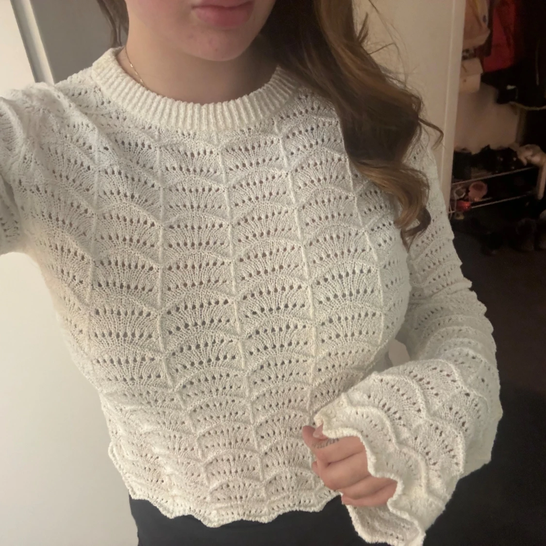 Säljer denna underbara virkade tröja. Köpt på kappahl men har inte kommit till mycket användning. I super fint skick i storlek 170 men passar till xs och s med🌸🫶