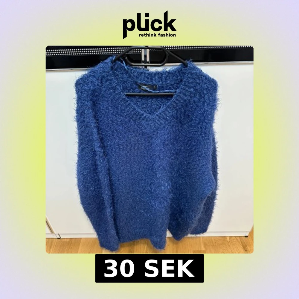 Blå fluffig stickad tröja
