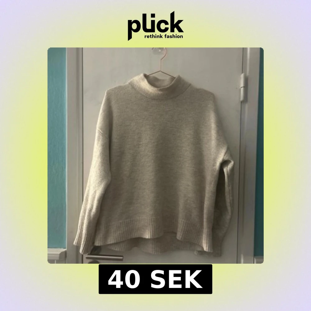 Mysig beige polotröja i stickad ull med lång ärm och ribbade muddar. Tröjan har en avslappnad passform och hög krage som håller dig varm under kyliga dagar. Perfekt att slänga på sig när det är lite kallare ute. Lite nopprig annars fint skick