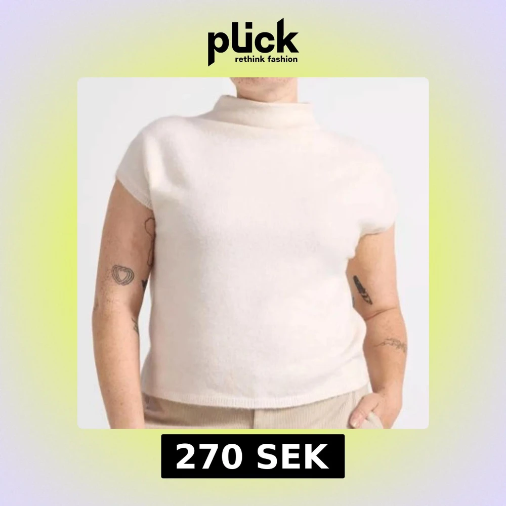 Beige stickad polotopp