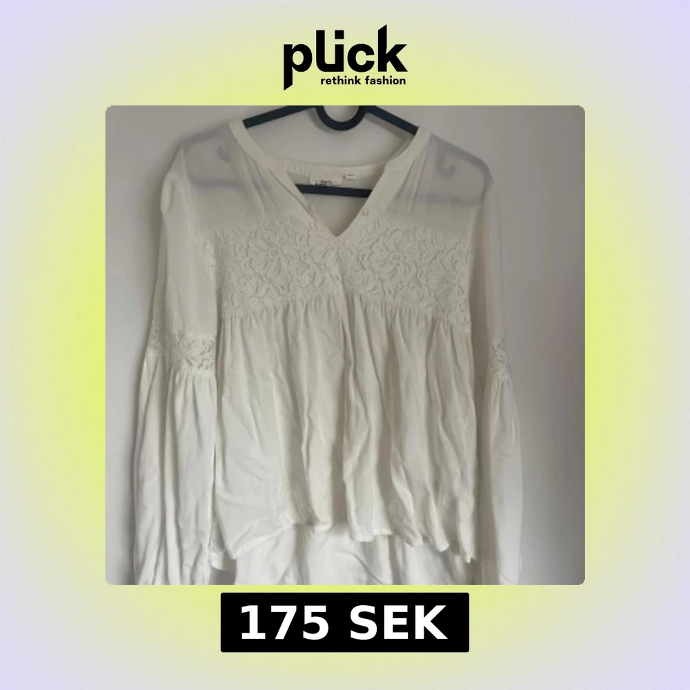 Superfin vit blus från Kappahl med v-ringning och blommig spets upptill och på ärmarna. Långärmad modell med lätt puff och lös passform. Perfekt för dig som gillar romantisk och bohemisk stil. Tunn och luftig, passar till många outfits. 164 men passar storlek S också.