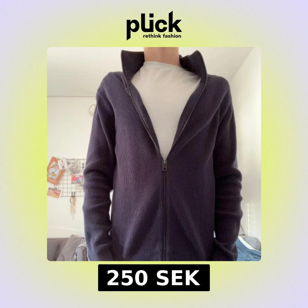 Säljer en mörkblå ribbad kofta från Kappahl i storlek S. Koftan har dragkedja framtill och hög krage, perfekt för lager-på-lager. Enkel och stilren design som passar till mycket.