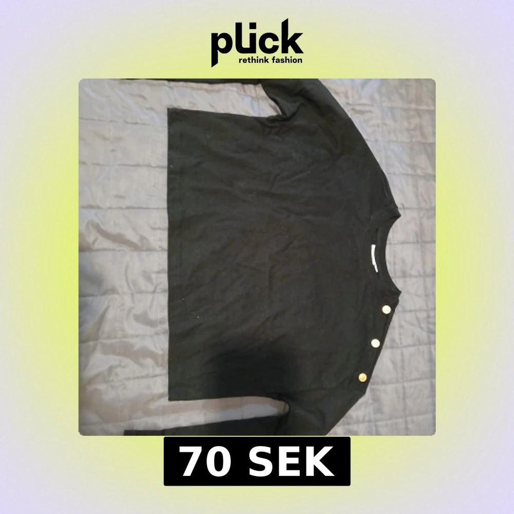 Svart långärmad tröja från Kappahl i mjuk bomull. Snygga guldknappar på ena axeln ger en stilren touch. Rund halsringning och klassisk passform, perfekt till jeans eller kjol. Enkel men ändå med en detalj som sticker ut.