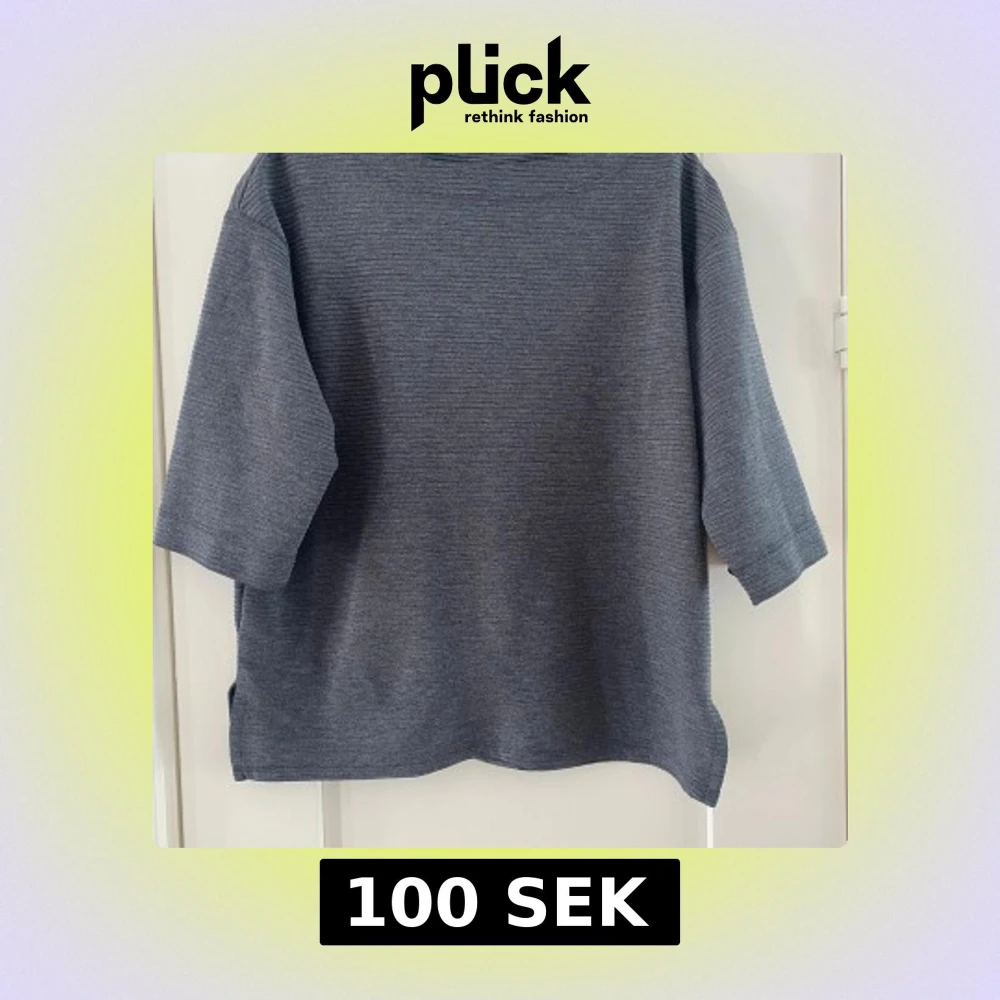 Säljer en chill grå tröja med ribbad struktur och trekvartsärmar. Tröjan har en rund halsringning och är lite loose i passformen, perfekt för dig som gillar enkel och stilren look. Materialet känns mjukt och skönt mot huden. Mått Över bröstet: ca 52 cm Längd från axeln och ner: ca 58 cm 75% polyester, 22% viskos och 3% elastan Kommer från ett djur och rökfritt hem.