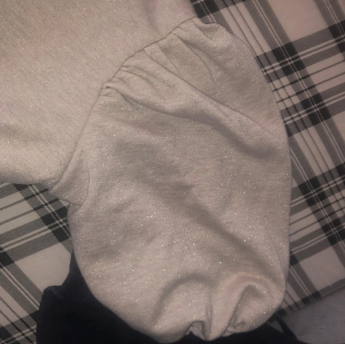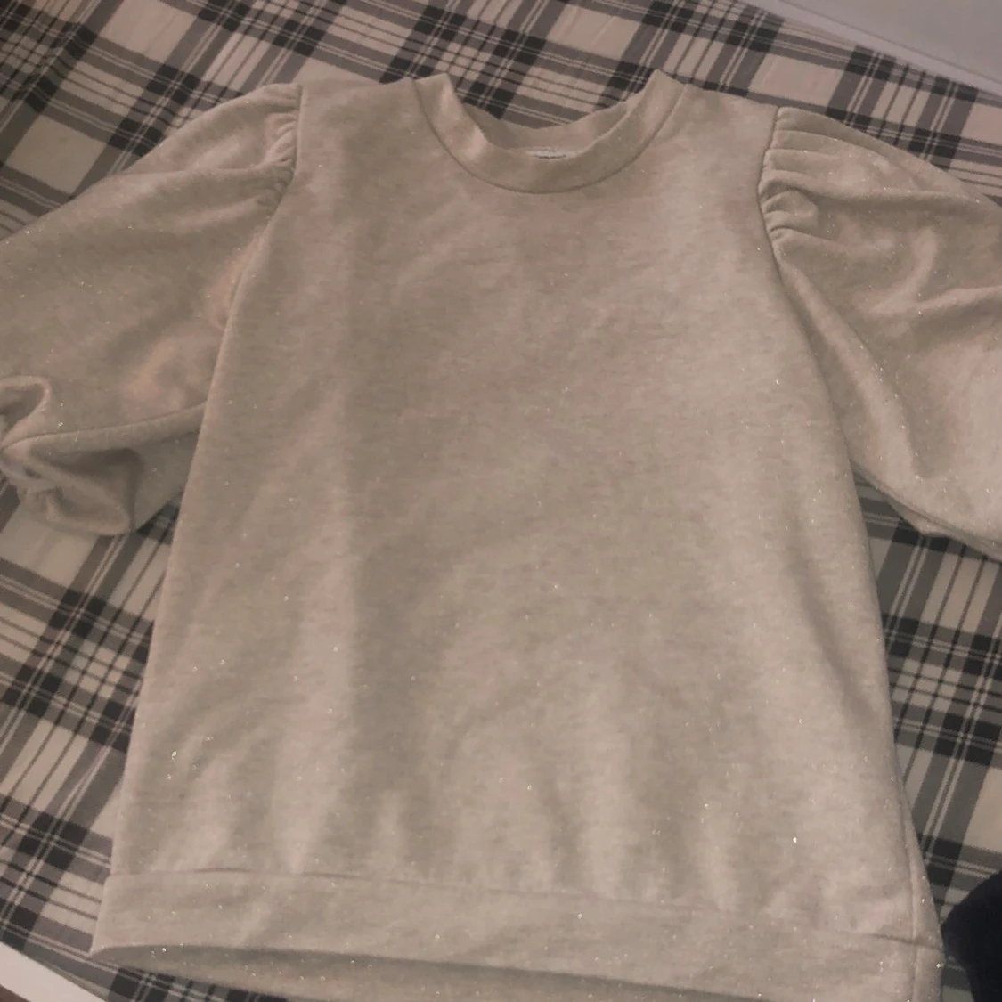 Supersöt tröja i beige med lätt puffarm och diskret glitter i tyget. Mjuk och bekväm, perfekt att klä upp eller ner beroende på tillfälle. Använd ett par gånger och det finns inga skador. För att se den på skriv privat och priset kan diskuteras!