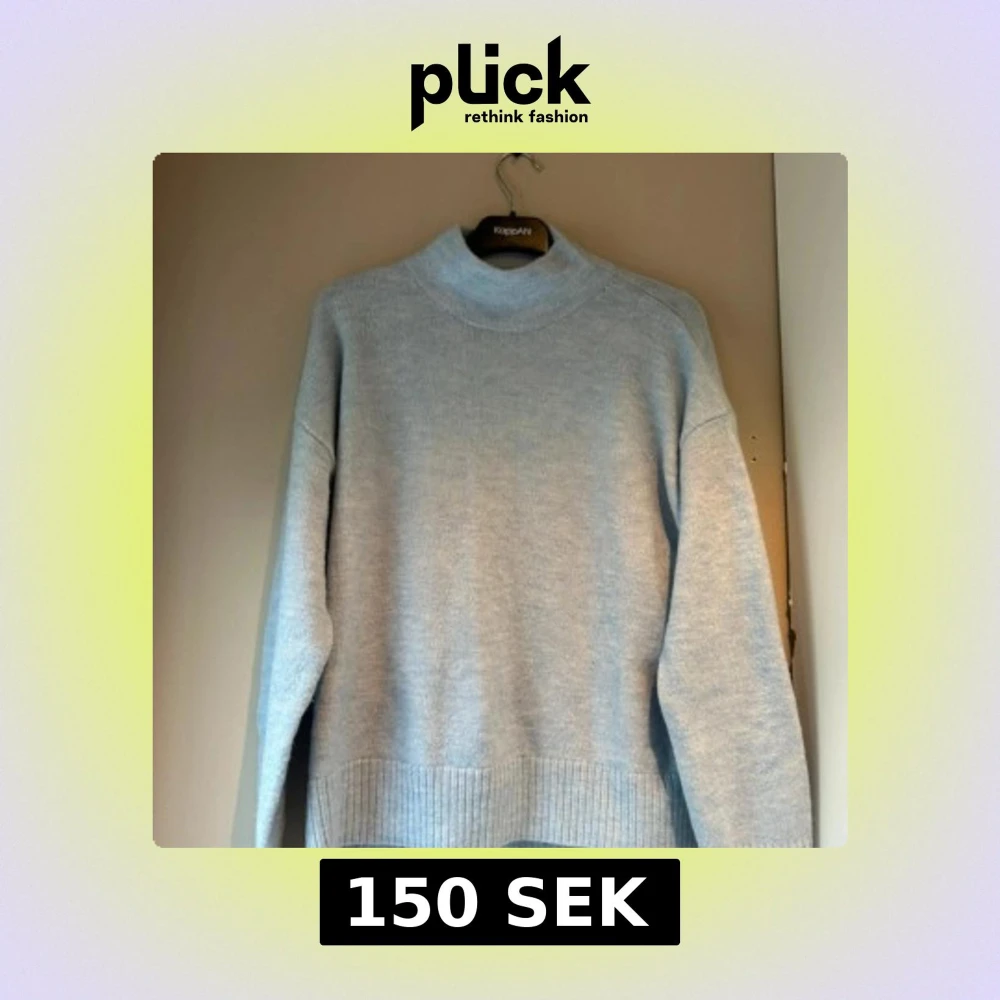 Mysig ljusblå stickad polotröja från KappAhl med hög krage och ribbade muddar. Aldrig använd men borttagen prislapp