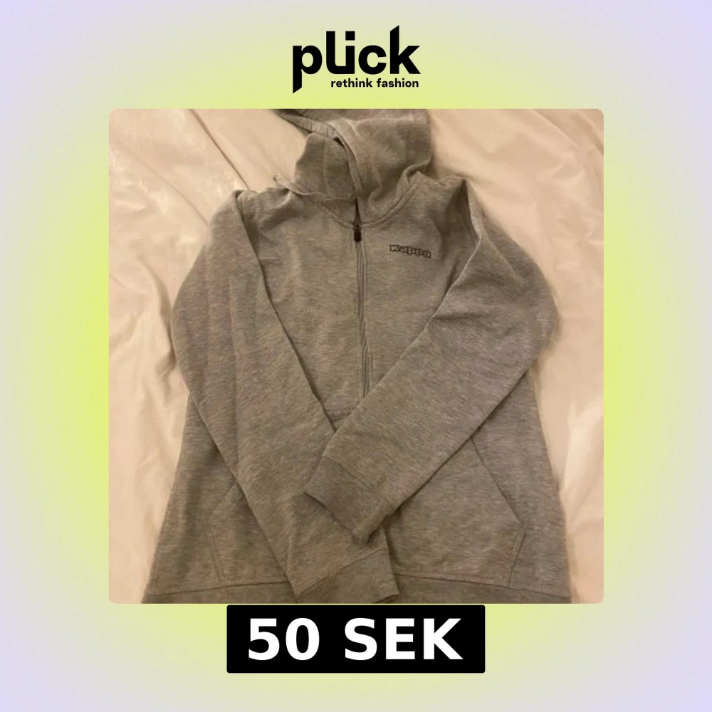 Säljer en stilren grå hoodie från Kappa med dragkedja och huva. Perfekt för en avslappnad look. Den har långa ärmar och praktiska fickor framtill. Passar bra till både vardag och träning.