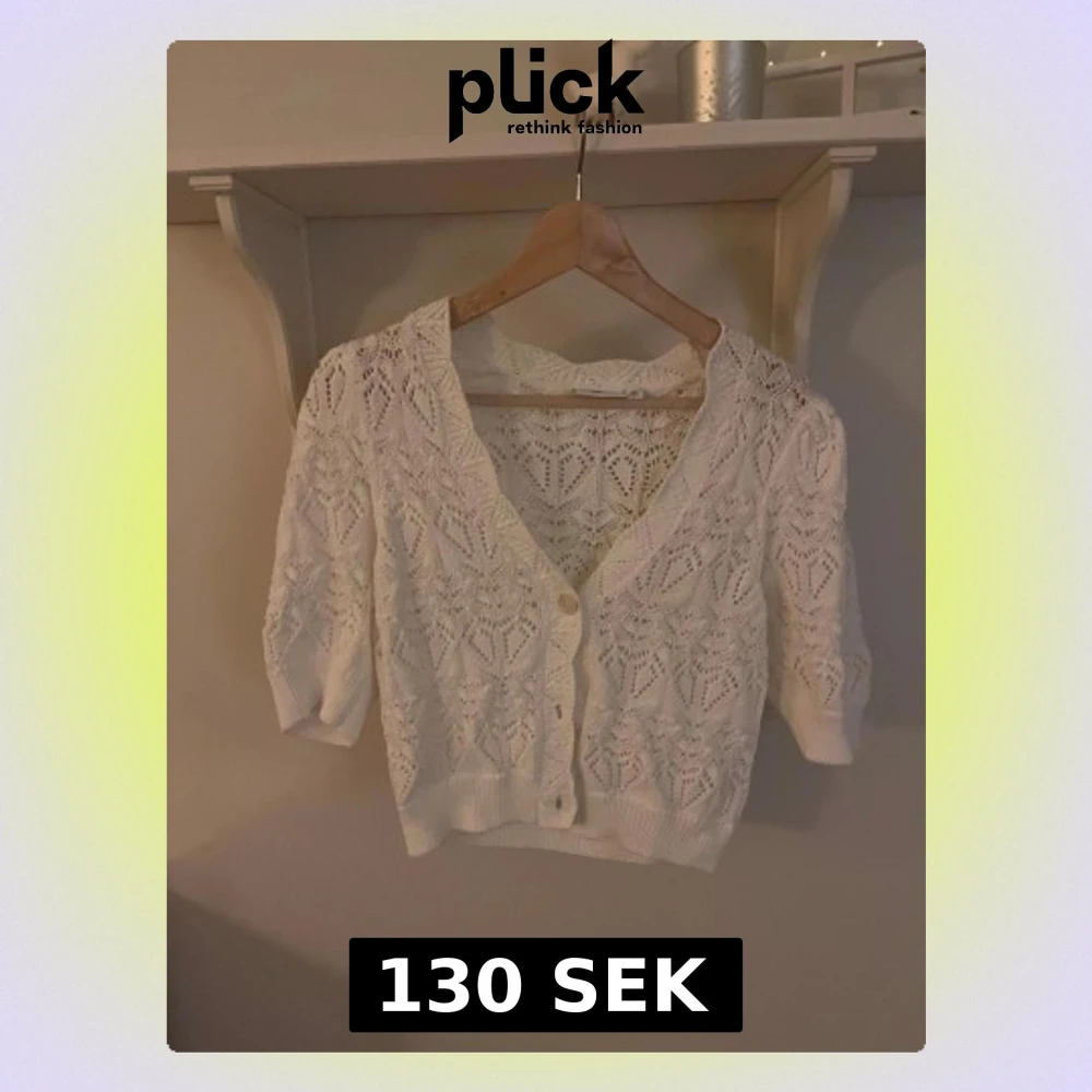 Superfin vit stickad kofta med korta ärmar och v-ringad hals. Koftan har ett detaljerat hjärtmönster och knappar framtill. Perfekt att slänga över en topp för en söt och chill look. Ribbad kant nedtill och vid ärmslut ger extra stilpoäng. Skriv för fler bilder/frågor❤️❤️