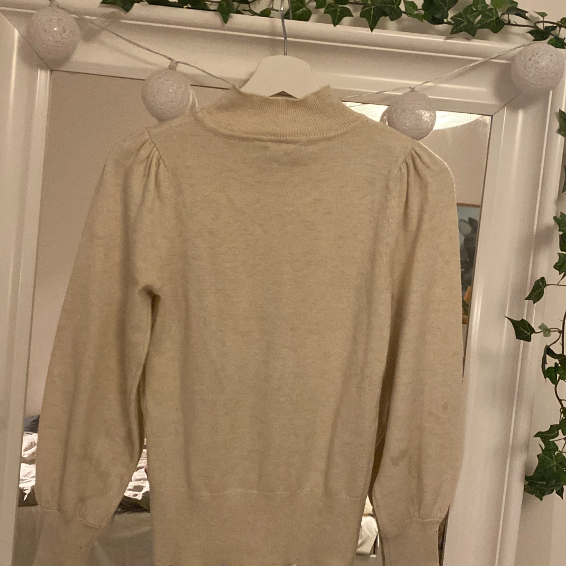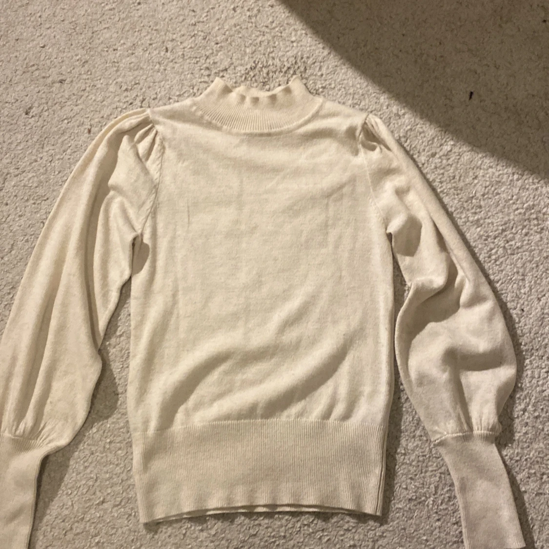 Superfin beige stickad tröja från KappAhl i storlek XS. Tröjan har puffiga långärmar,och materialet är sjukt könt och stretchigt. Perfekt för dig som vill ha en kön och stockholmstil ish typ av look inför hösten 😊☺️