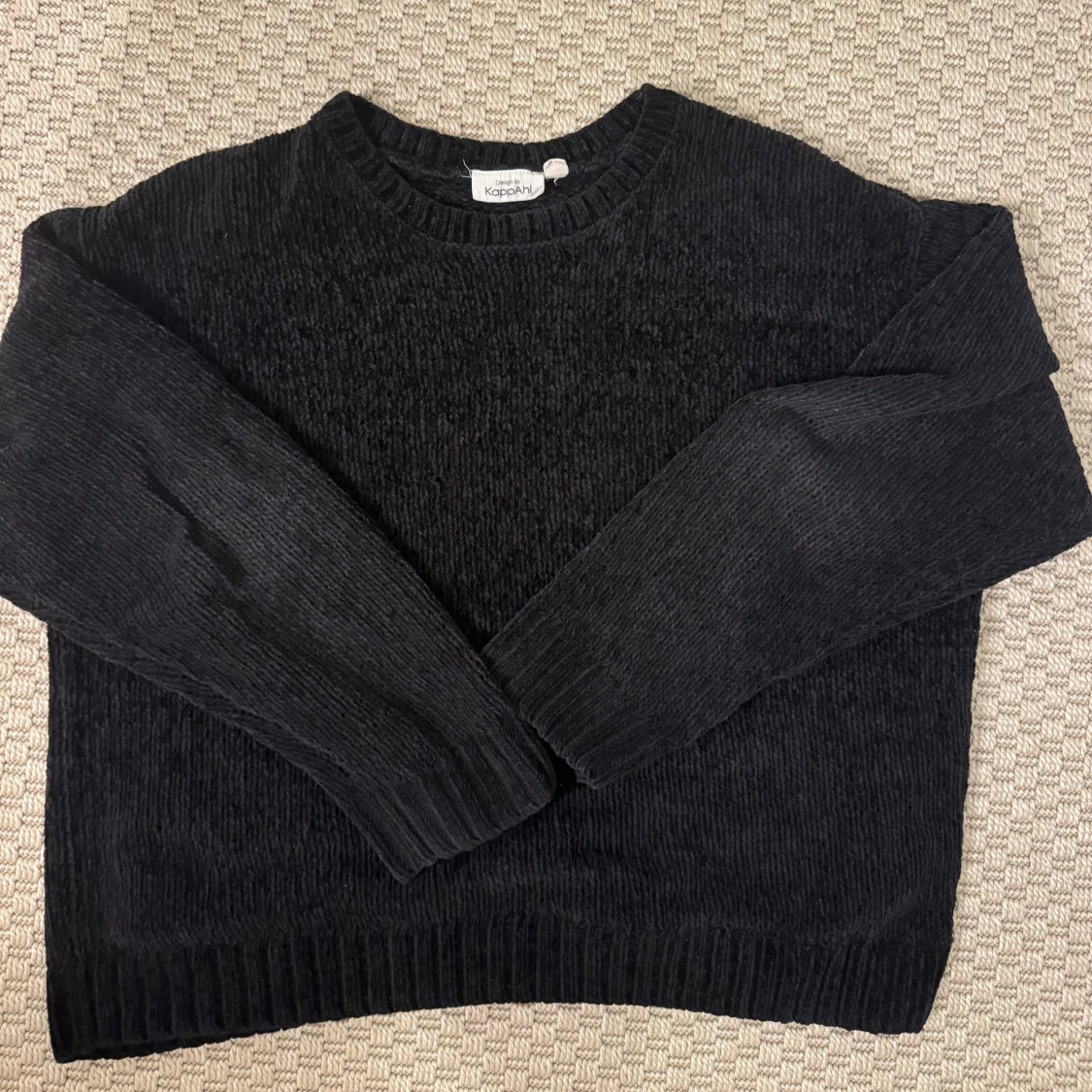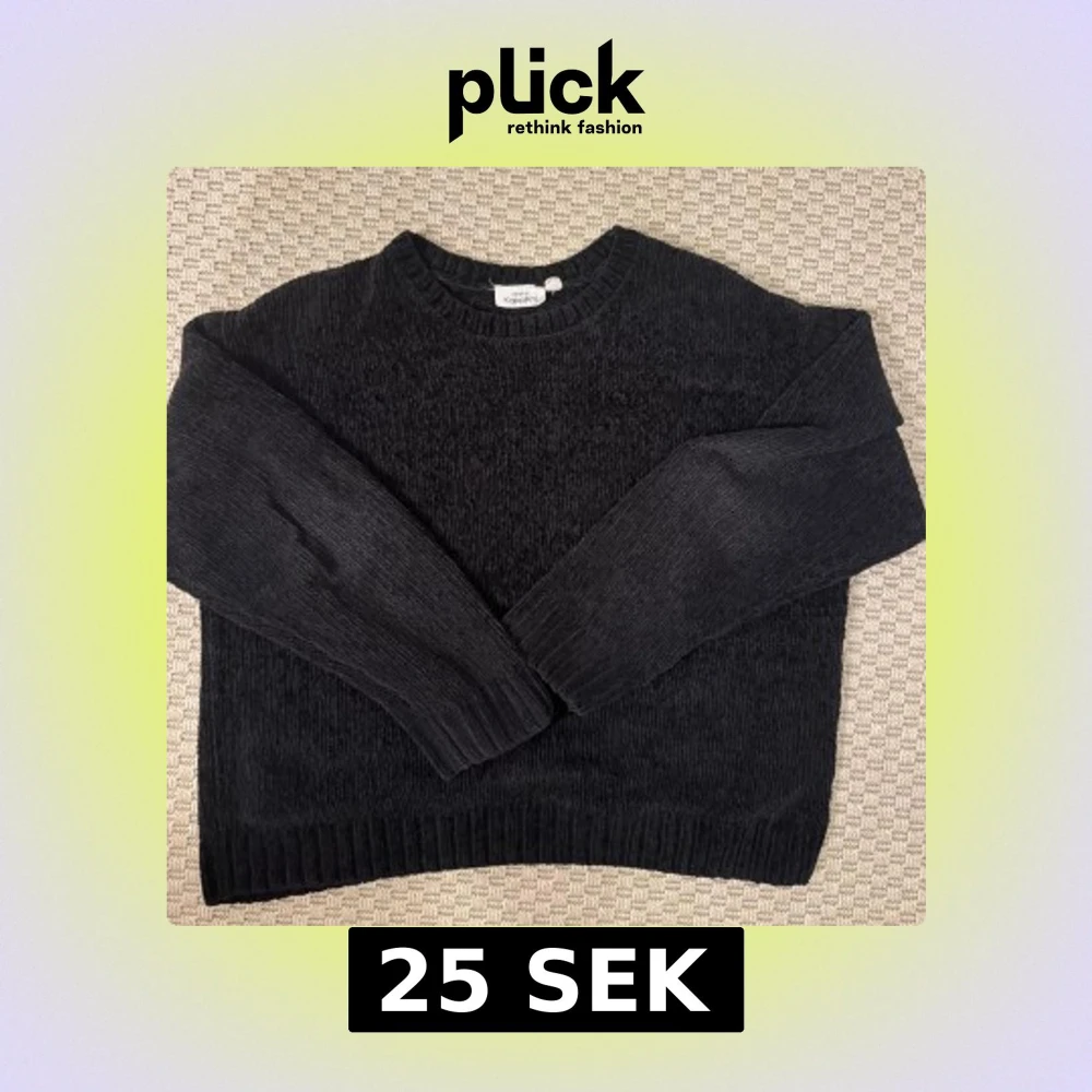 Mysig svart stickad tröja från KappAhl med rund halsringning och ribbade muddar vid ärmslut och nederkant. Perfekt för lager-på-lager och chill dagar. Klassisk modell som funkar till det mesta.