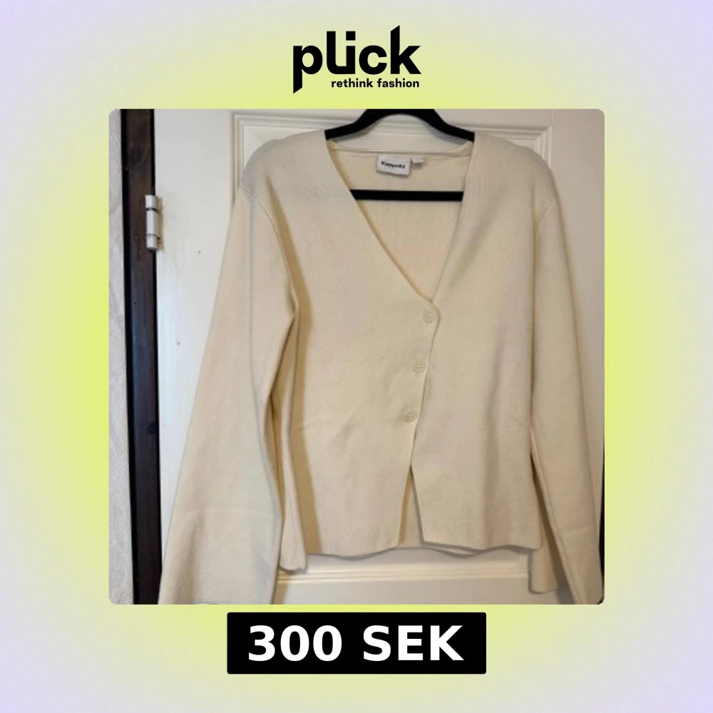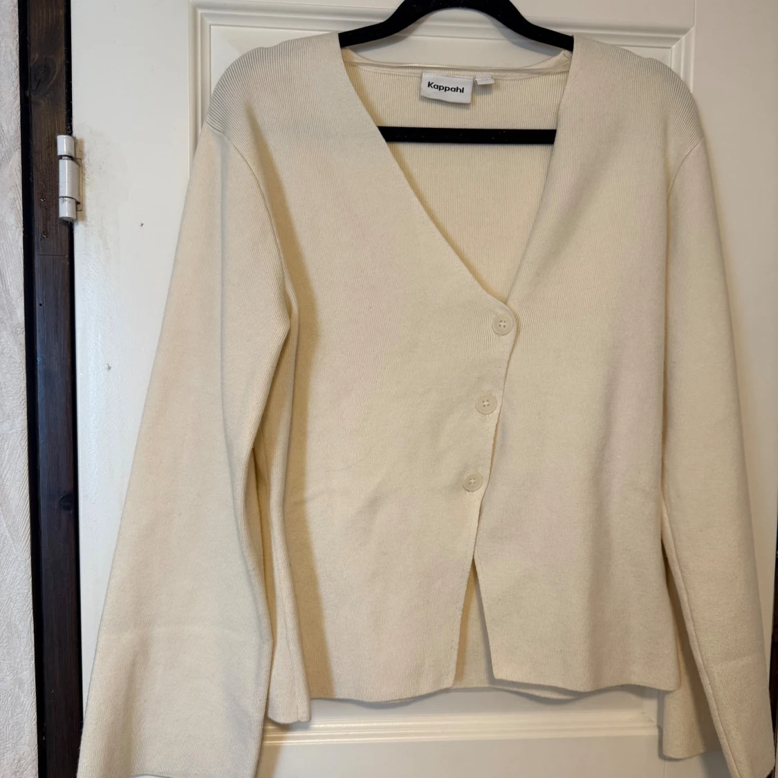Snygg beige kofta från Kappahl i storlek XS. Koftan har v-ringning, tre knappar framtill och är långärmad.