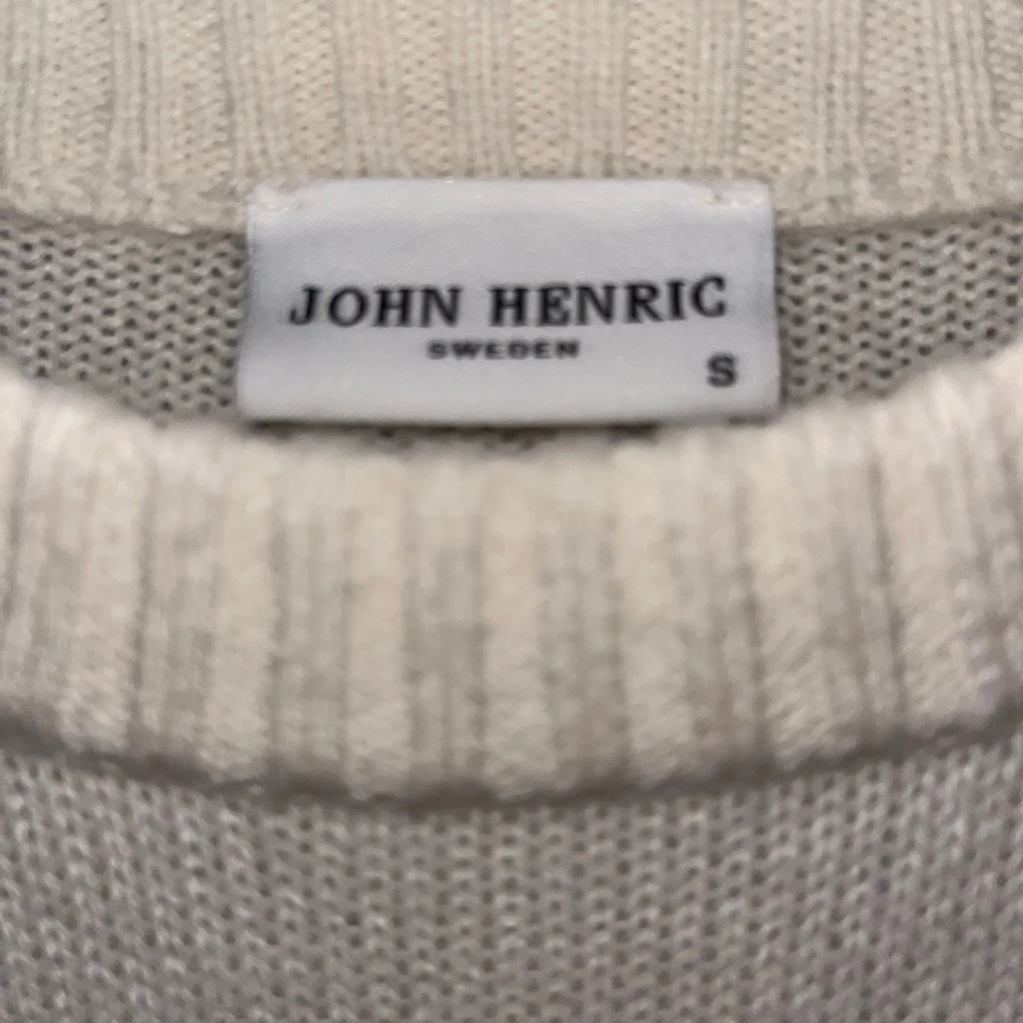 Säljer en stilren grå bomull/kaschmir tröja från John Henric. Tröjan har en klassisk design med rund hals och långa ärmar. Perfekt för kyligare dagar och enkel att matcha med olika outfits. Den är köpt för 1499 på ordinarie pris och är inte använd många gånger!