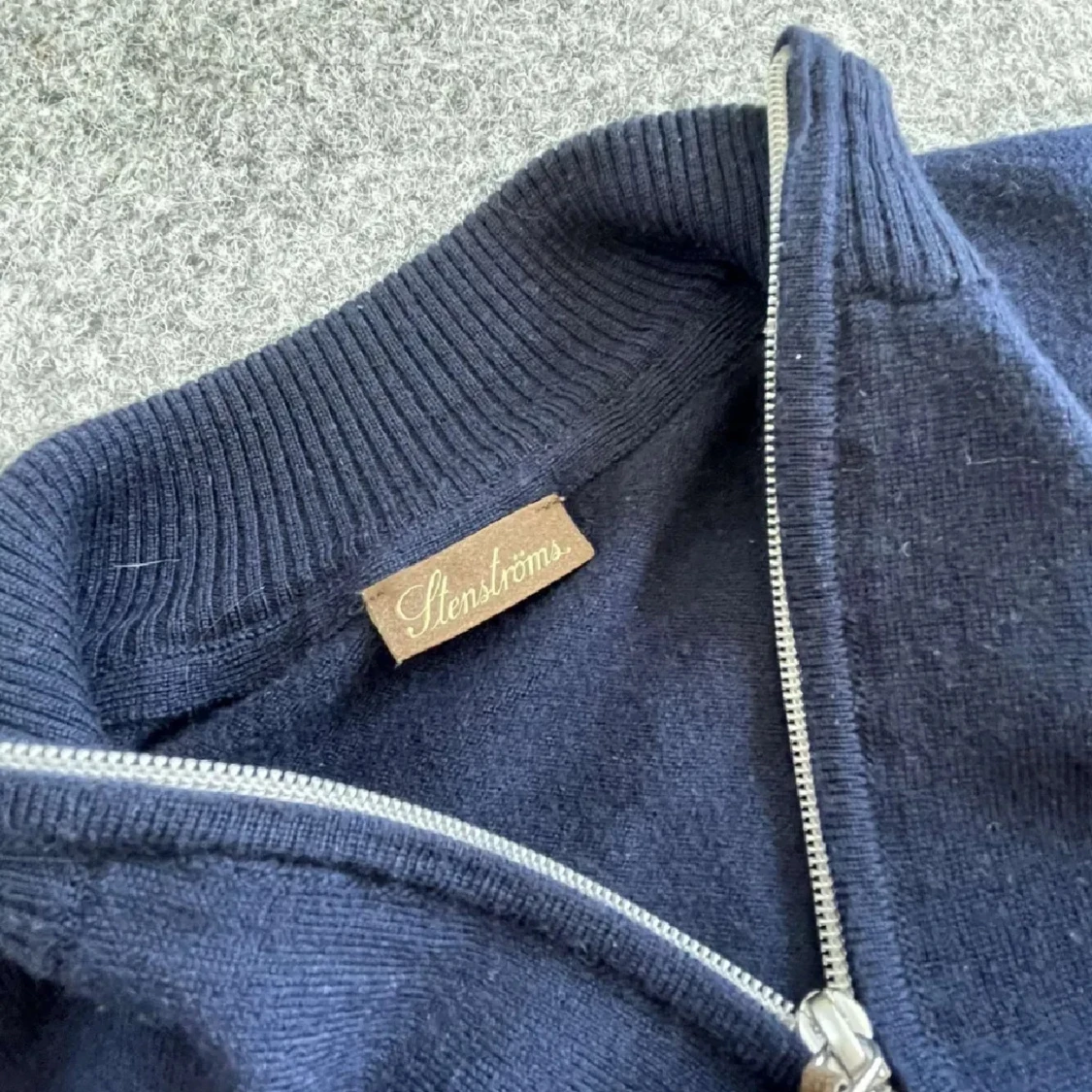 En fet och ren mörkblå full zip cardigan (kofta med zip) från Stenströms. Praktisk dragkedja med ribbade ärmar och krage 🤩 Storlek S Nypris: 2300kr Kondition: 9/10