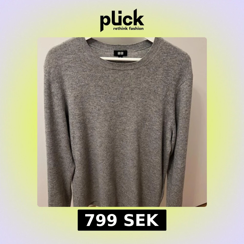 Säljer en stilren grå kashmirtröja från Uniqlo. Väldigt bra skick och använd ett fåtal gånger. Fick den som en gåva men den var för liten så det är därför jag säljer den. 100% Kashmir, Nypris 1299 kr. Öppen för byten!