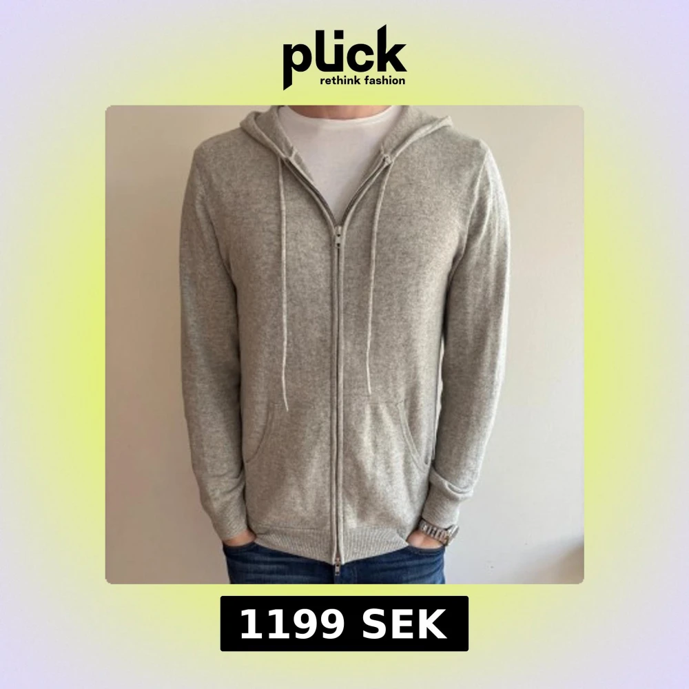Snygg ljusgrå kashmirhoodie med huva och snörning, hel dragkedja framtill och två fickor. Tröjan är stickad i kashmir. Perfekt för chill dagar och enkel att matcha med jeans. Köpt från John Henric, använd sparsamt helt utan defekter.