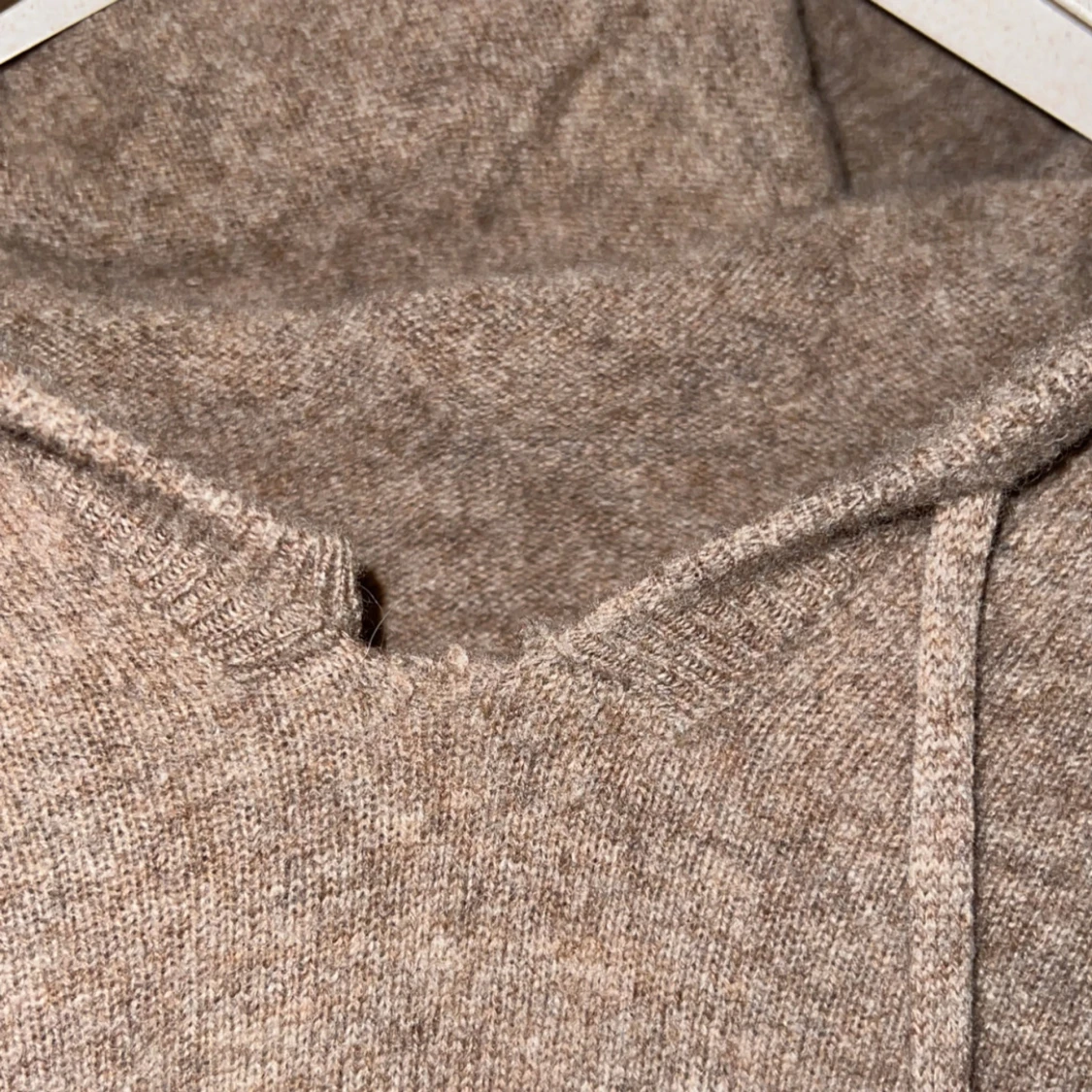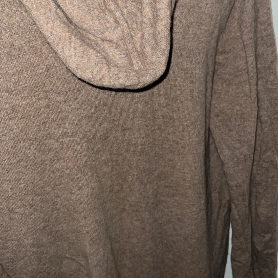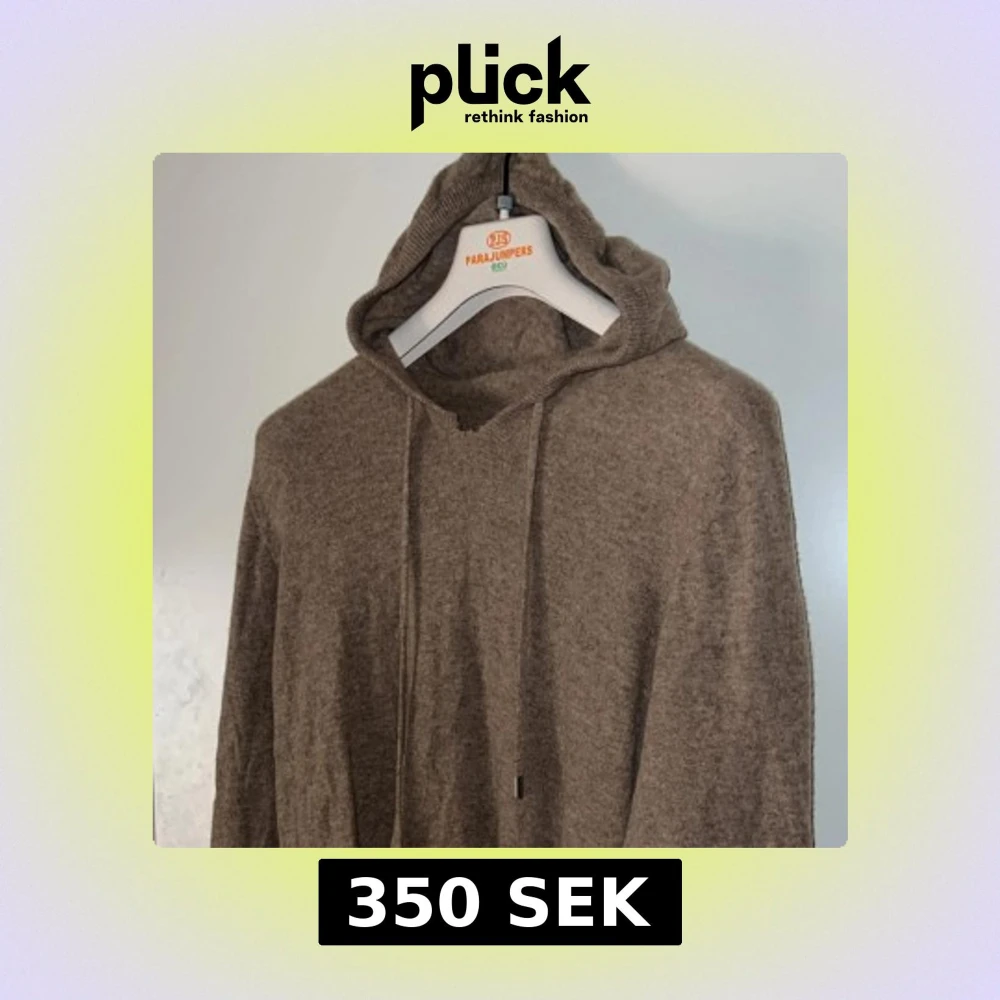 Mysig beige stickad hoodie med huva och snörning. Tröjan har lång ärm och är tillverkad i ett mjukt material som passar perfekt för kyliga dagar. Enkel och stilren design som funkar till det mesta. Alla lappar är klippta köptes på nk för runt 2 k ena skadan längst fram de andra bild