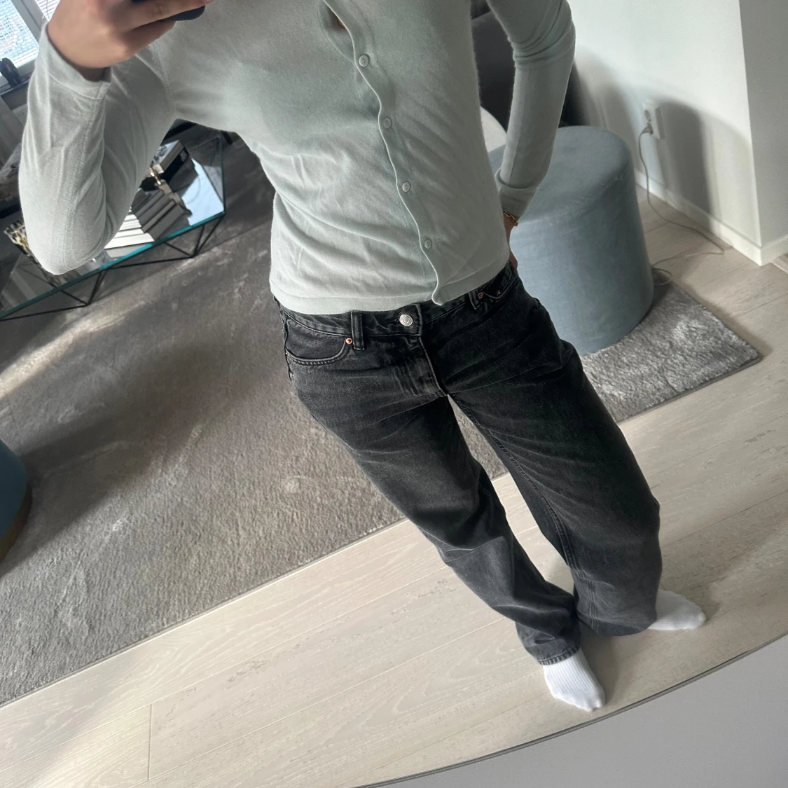 Säljer denna super mysiga mint-färgade kofta. Den är inte använd många gånger alls. Ränderna som syns på bilden är från min garderob och försvinner super enkelt genom att ha på sig den eller låta den hänga. (Det kommer ha försvunnit innan den köpes)