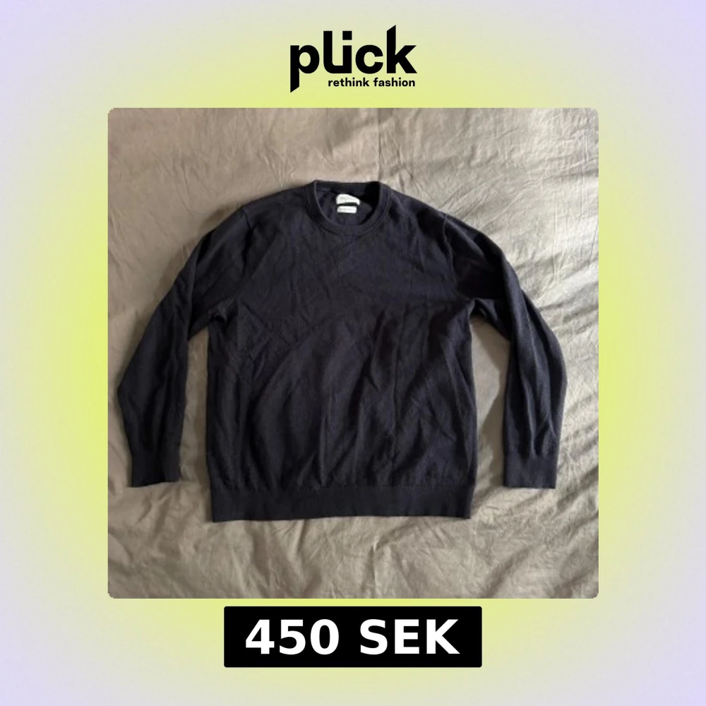 Säljer en stilren mörkblå merinoull tröja i bra skick från These Glory Days i Superior Merino.