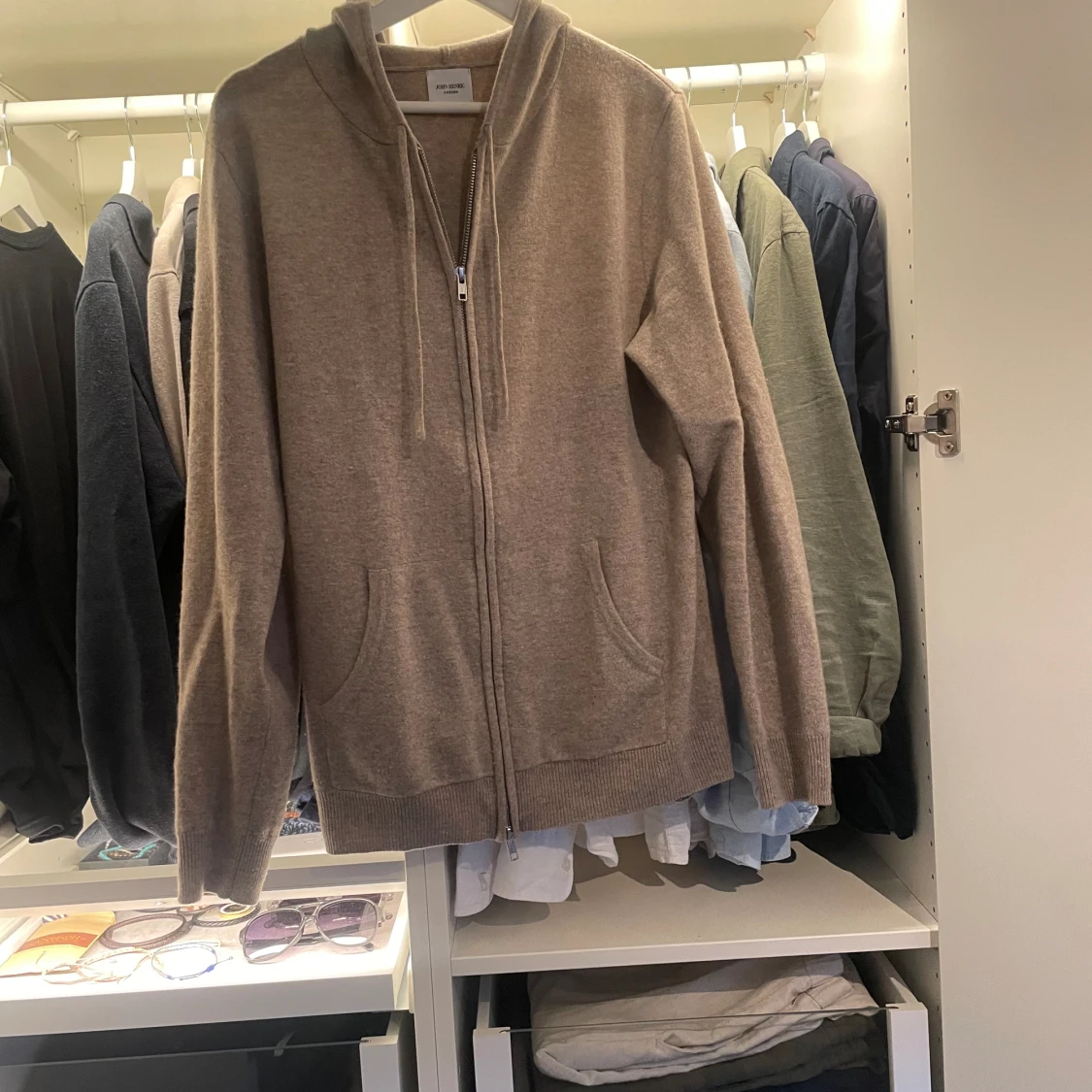 Säljer en helt ny John Henric 100% Kashmir zip med luva, i strl medium, beige. Aldrig använd, skick 10/10. Nypris 2500 kr
