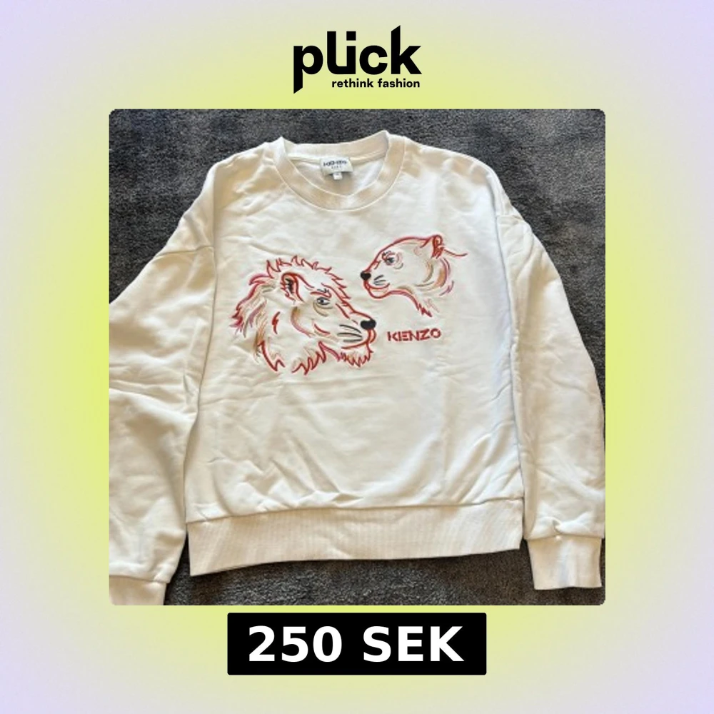 Säljer en cool vit sweatshirt från Kenzo Kids med ett lejon- och pantermotiv i rött och beige. Tröjan har långa ärmar och ribbade muddar vid ärmslut och nederkant. Perfekt för den stilmedvetna ungdomen!