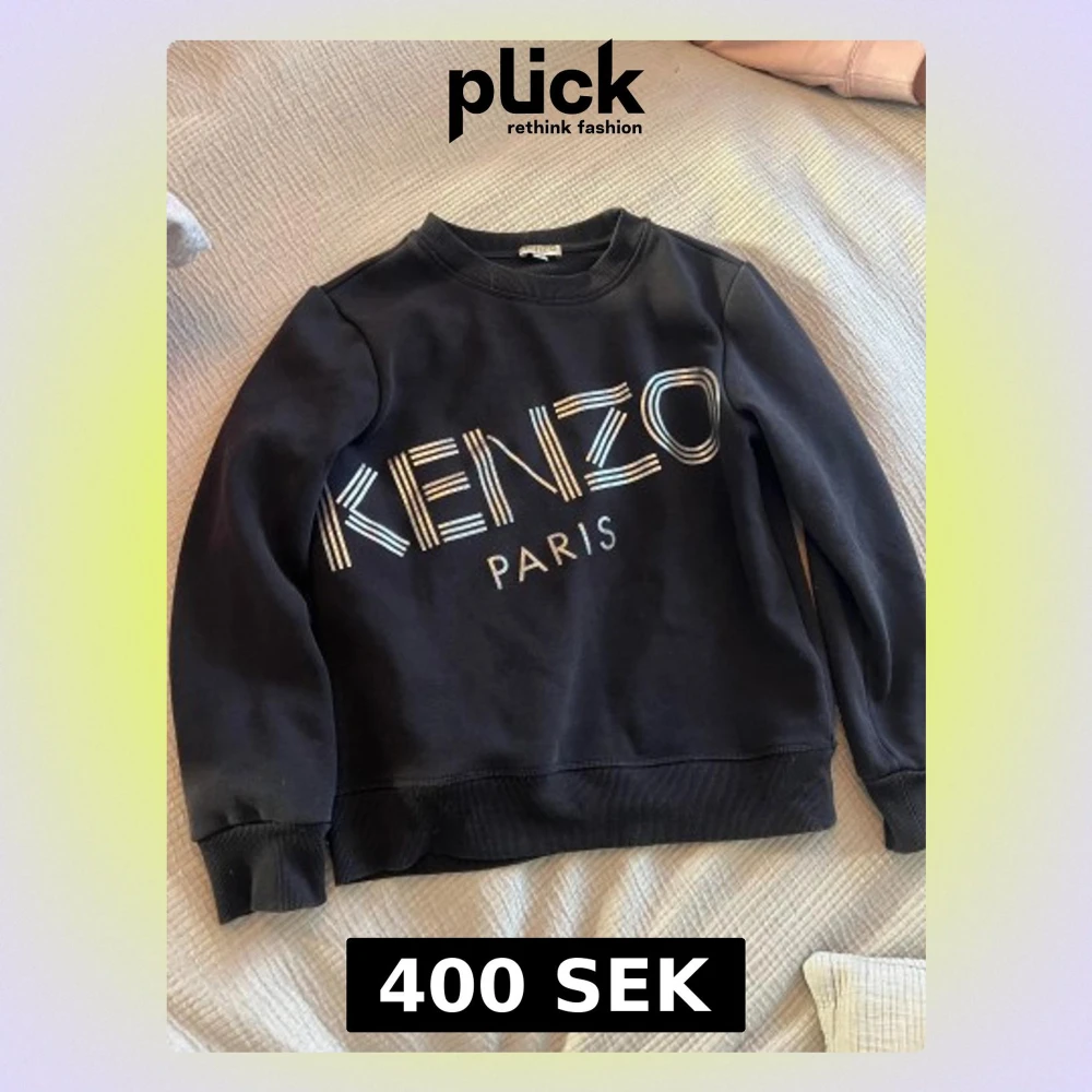 Cool svart sweatshirt från Kenzo Paris med stort grafiskt tryck i silver.