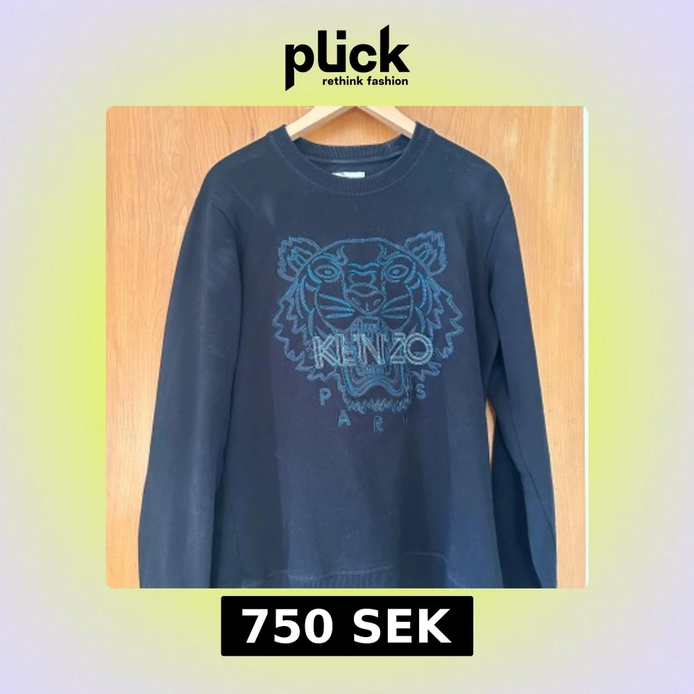 En svart sweatshirt med turkos logga från kenzo. Använd ett fåtal gånger, sedan har den bara samlat damm. Nypris 1800.