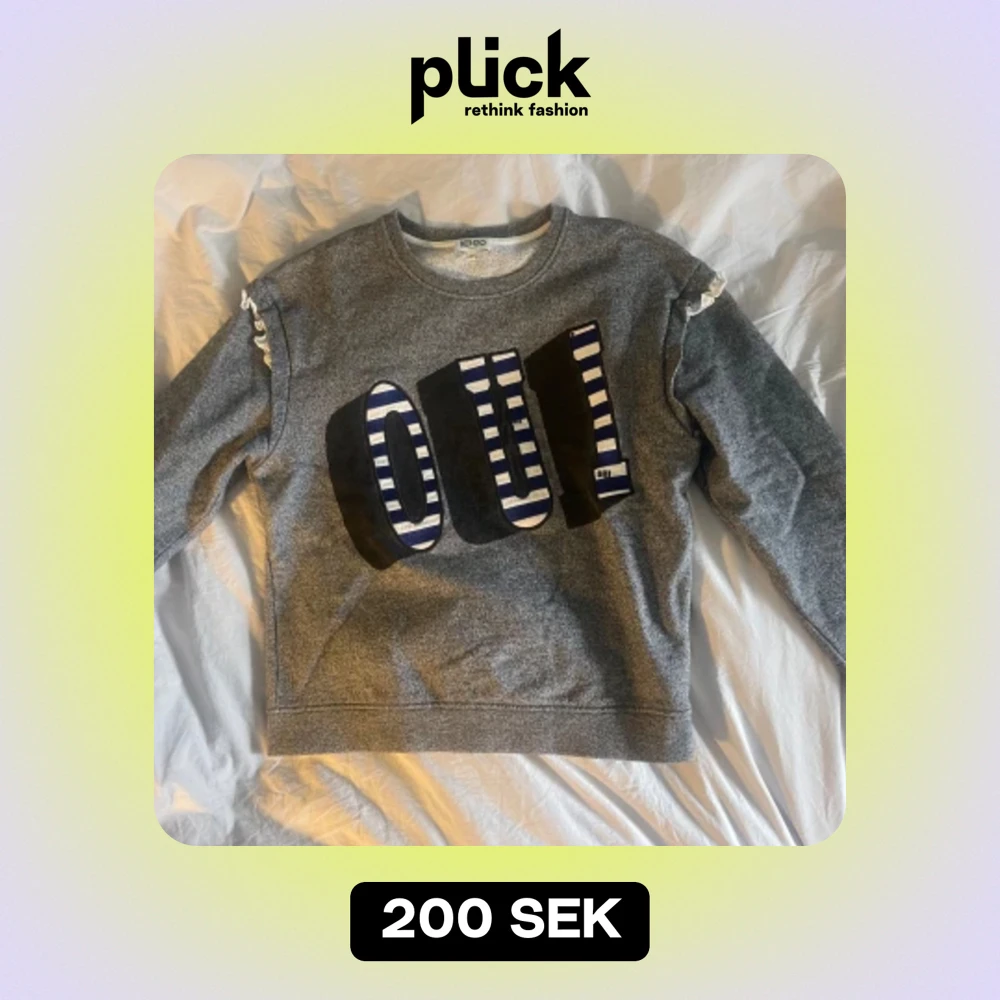 Jättefin tröja från kenzo i grått! Har ett tryck på framsidan där det står OUI, och små volanger på axlarna! Storlek ca men funkar även för s❤️ pris går att diskuteras!