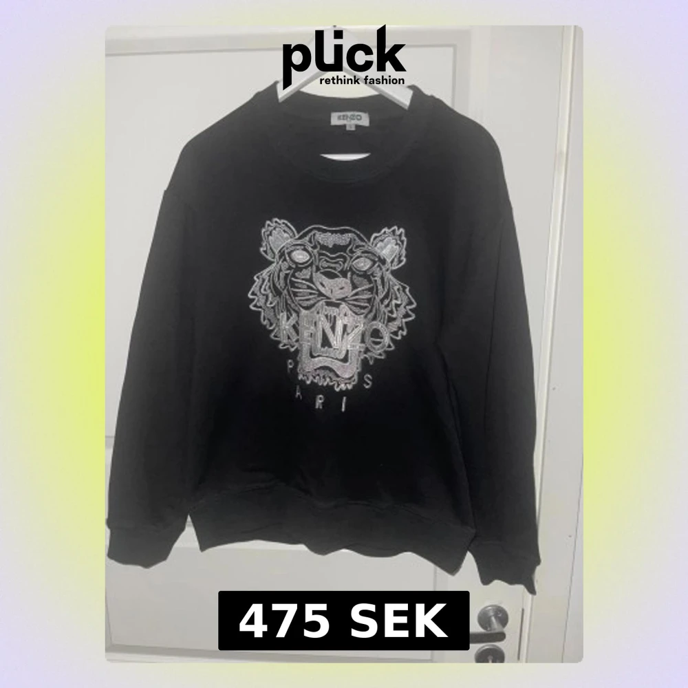 Svart sweatshirt från Kenzo med ikonisk broderad tiger i silvers på bröstet och texten 'Kenzo Paris'.